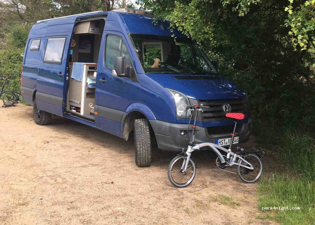 Great parking space, about 100 m to the beautiful beach. Great kilometer-long cycle path on the dike along the coast to the north. Space for vehicles. Garbage cans available