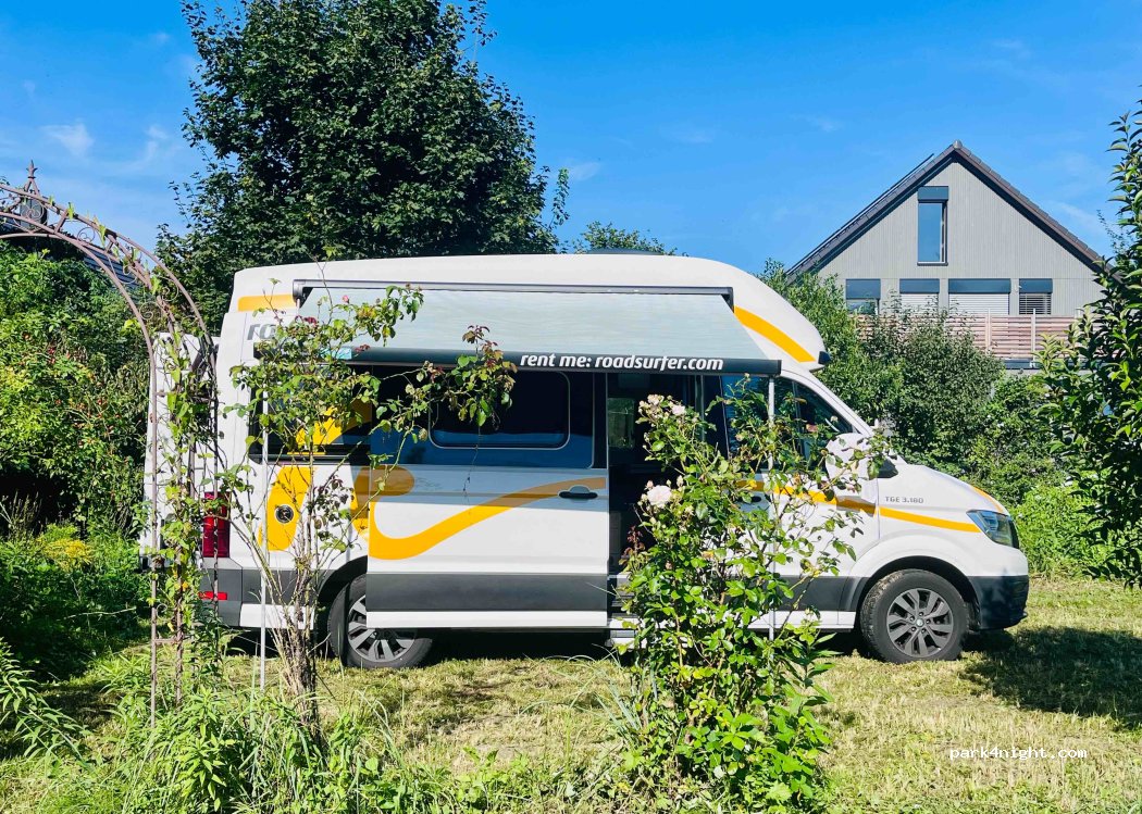 Großer Stellplatz, sicher gelegen. Saubere Toilette.