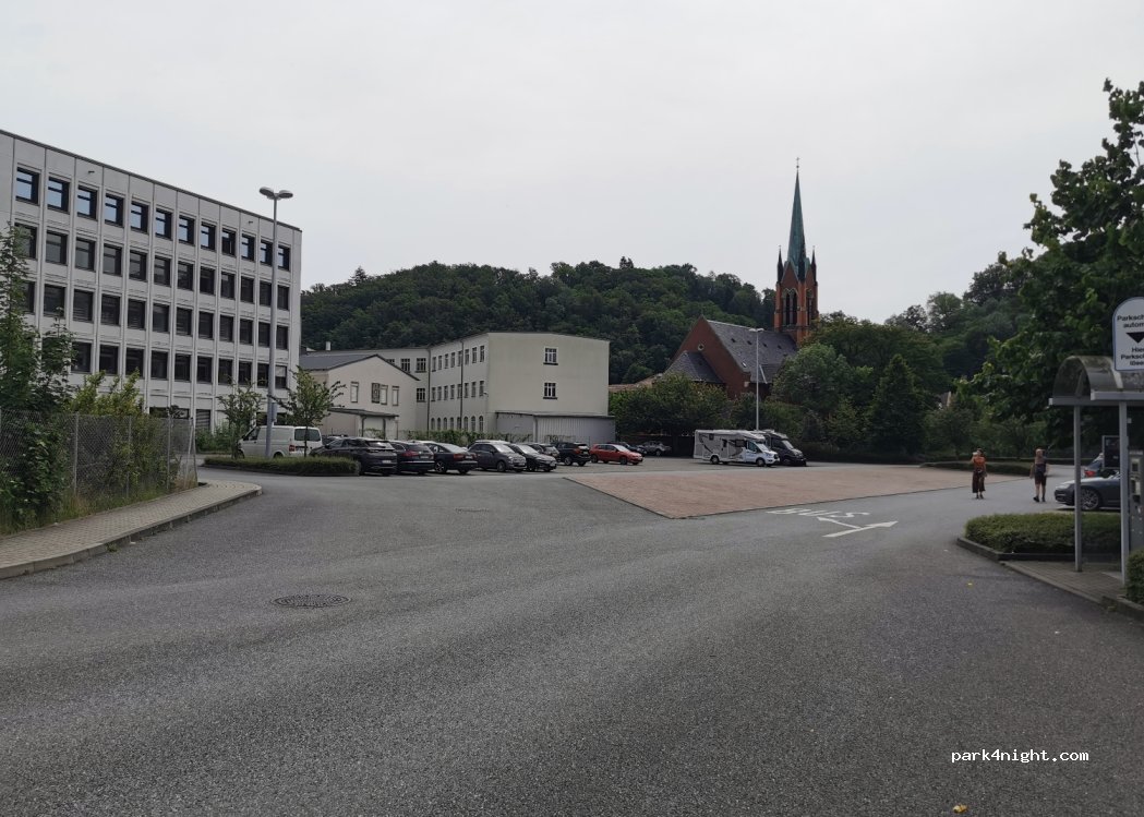 Flat, asphalted parking lot near the Meissen porcelain factory. Quiet location.