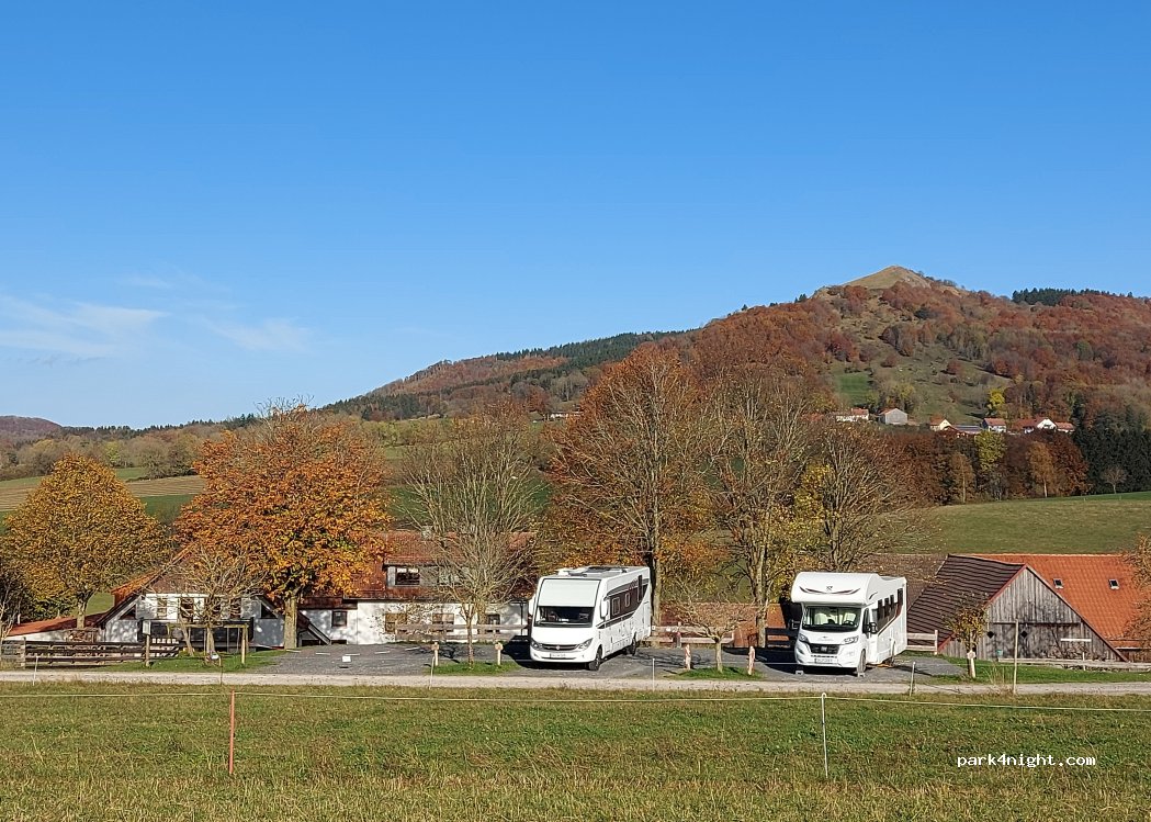 Wunderbarer Stellplatz bei einem Bauernhof im Grünen. Sehr ruhig. Nette Betreiber. Gut mit Hund und als Ausgangspunkt für Wanderungen. // Den Preis i.H.v. 17 € inkl. Gästebeitrag fand wir jedoch etwas hoch (besonders wenn man es mit den 7 € in Poppenhausen vergleicht). // Dennoch 5 Sterne, weil einfach schön.