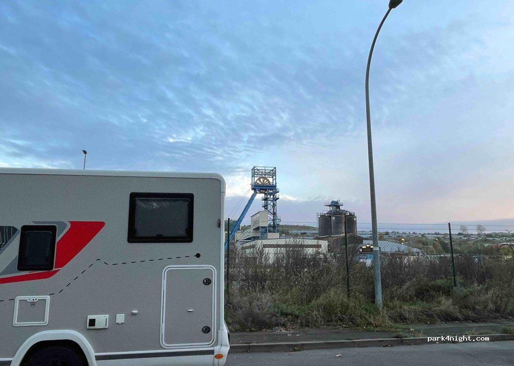 Place de parking dans une zone industrielle. Stationnement en bord de route dans une aire de stationnement. Nous étions ici avec quelques autres camions qui avaient passé la nuit ici. Idéal pour une nuit et surtout calme. La réception est disponible. Important : Pas d'électricité, etc. Le parking est réservé aux campeurs autonomes.
