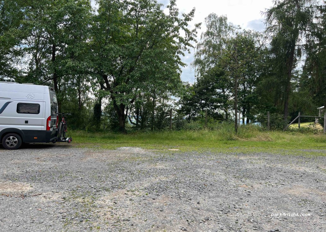 Großer, ebener, ruhiger Parkplatz. Ideal zum Übernachten auf der Durchreise! Direkt in der Natur. Schöne Gegend zum Wandern.