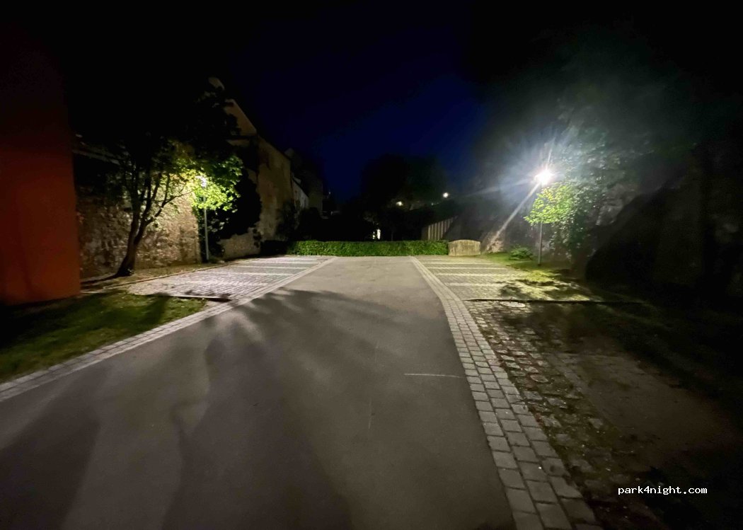 Place de parking gratuite également pour les mobil-homes. Jusqu'à 6 m fonctionne sans aucun problème. Selon les habitants, il n'y a aucun contrôle. L'endroit est éclairé et il y a généralement beaucoup de places libres