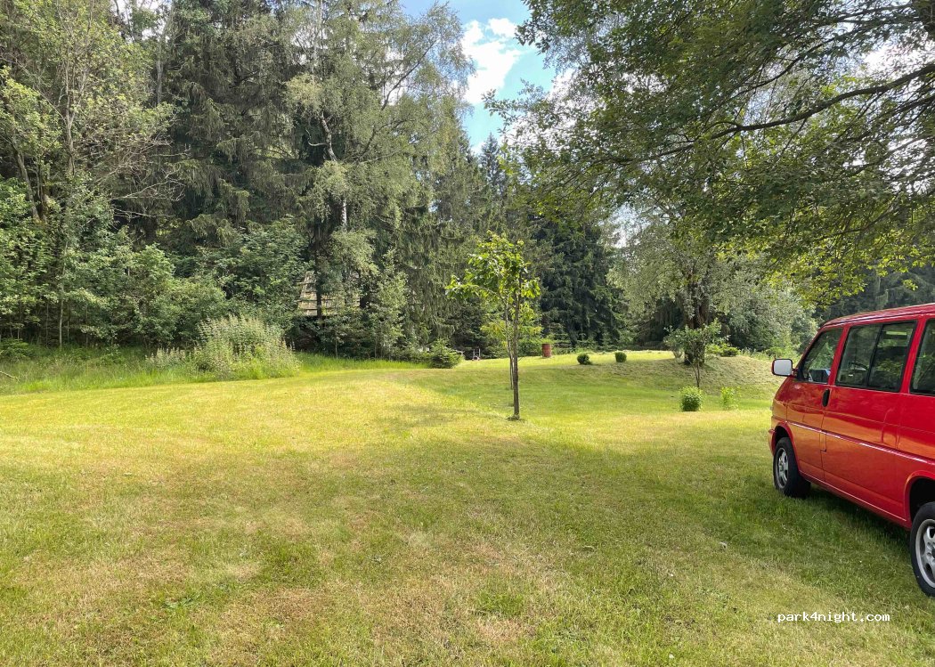 Sehr schöner Stellplatz, tolle Aussicht. Sehr netter Kontakt zum Besitzer. Lediglich für uns hat es nicht so gut gepasst, da wir sehr geräuschempfindlich sind und die Straße rüber nach Tschechien sehr befahren ist, was man eigentlich nicht denkt auf Anhieb. Aber man hört das schon gut, vor allem wenn man gerne mit Frischluftzufuhr schläft oder ein Dachzelt hat.