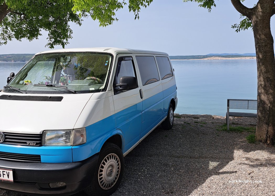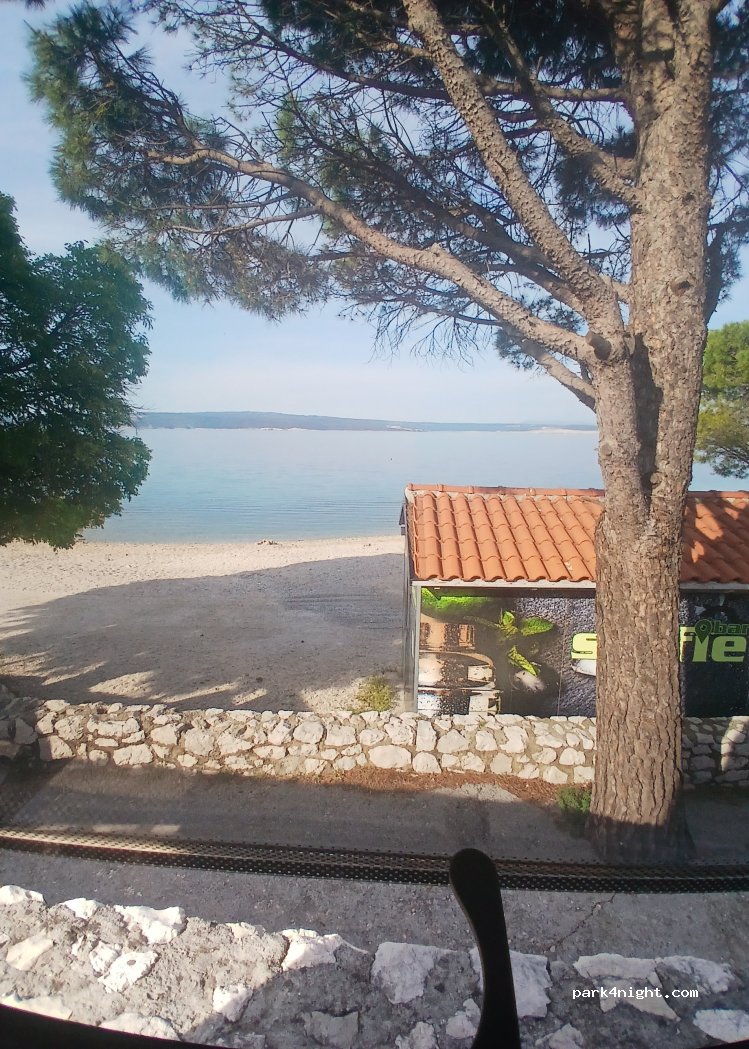 Super Stellplatz für den Tag, direkt am Kiesstrand. Vor den Strandbars sind längs Parkplätze, wo man auch mit längeren Fahrzeugen gut stehen kann. Wir standen einen ganzen Tag, aber nicht über Nacht, da uns zu viele Menschen dort waren.
