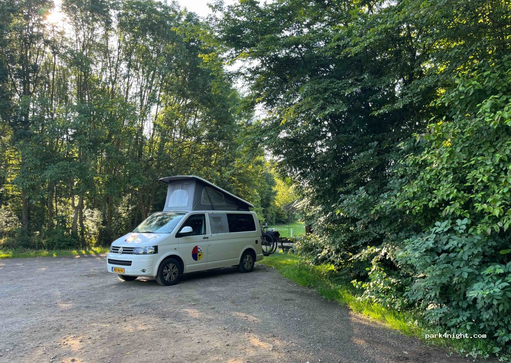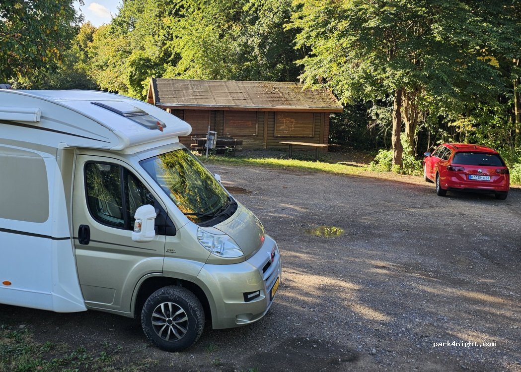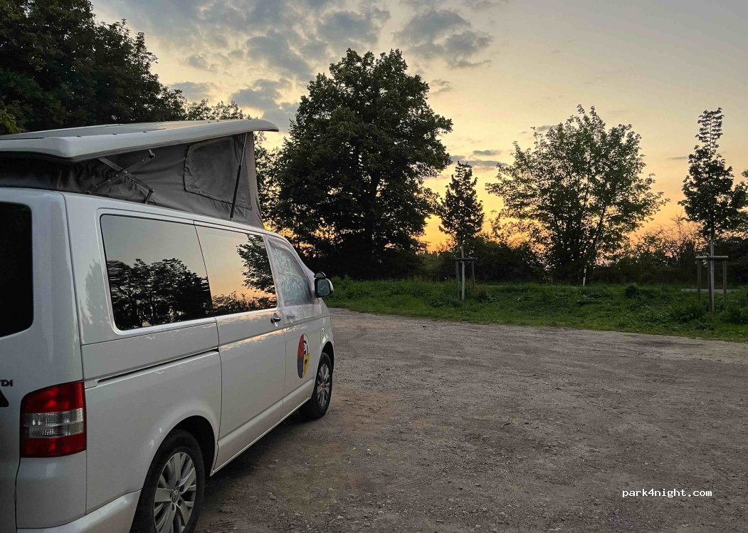 Small walking P next to a fairly quiet road. Gravel, more or less horizontal, sun and shade. No amenities except a trash can. One or two campers possible, also long. Busy with walkers and dog walkers. Be sure to walk to the viewpoint over the Tagebau, impressive. The night is very quiet here, but you can hear work going on in the Tagebau in the background. Moreover, commuting here starts around 6 am, so it is not so quiet anymore.