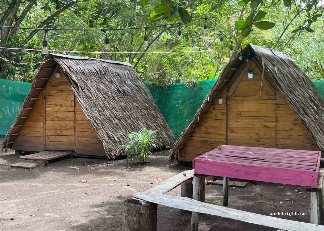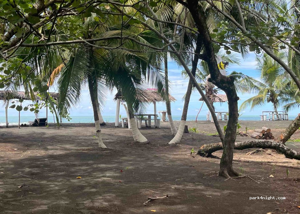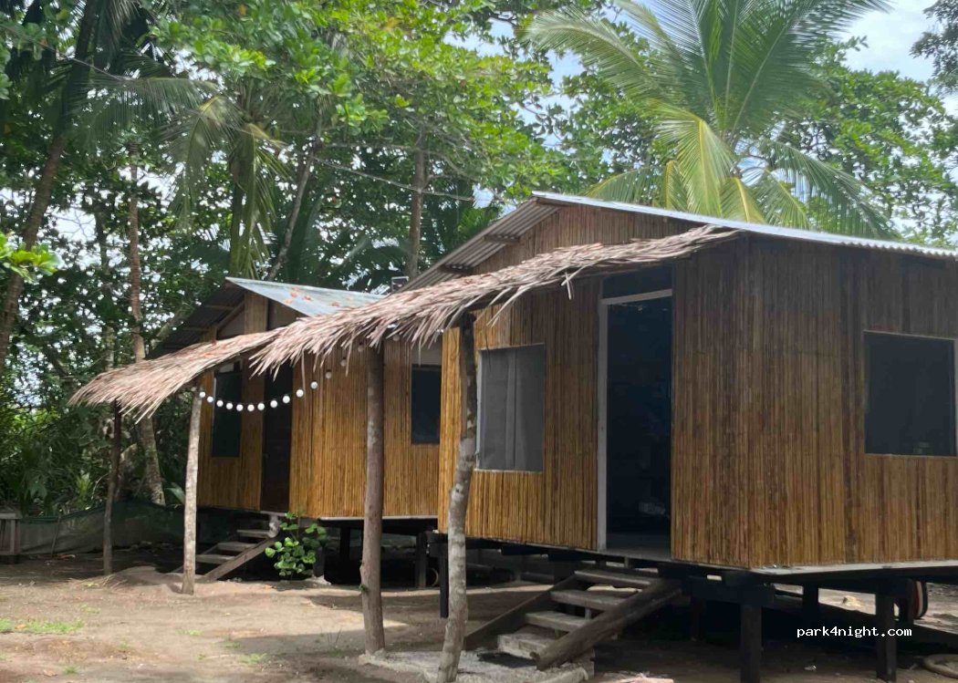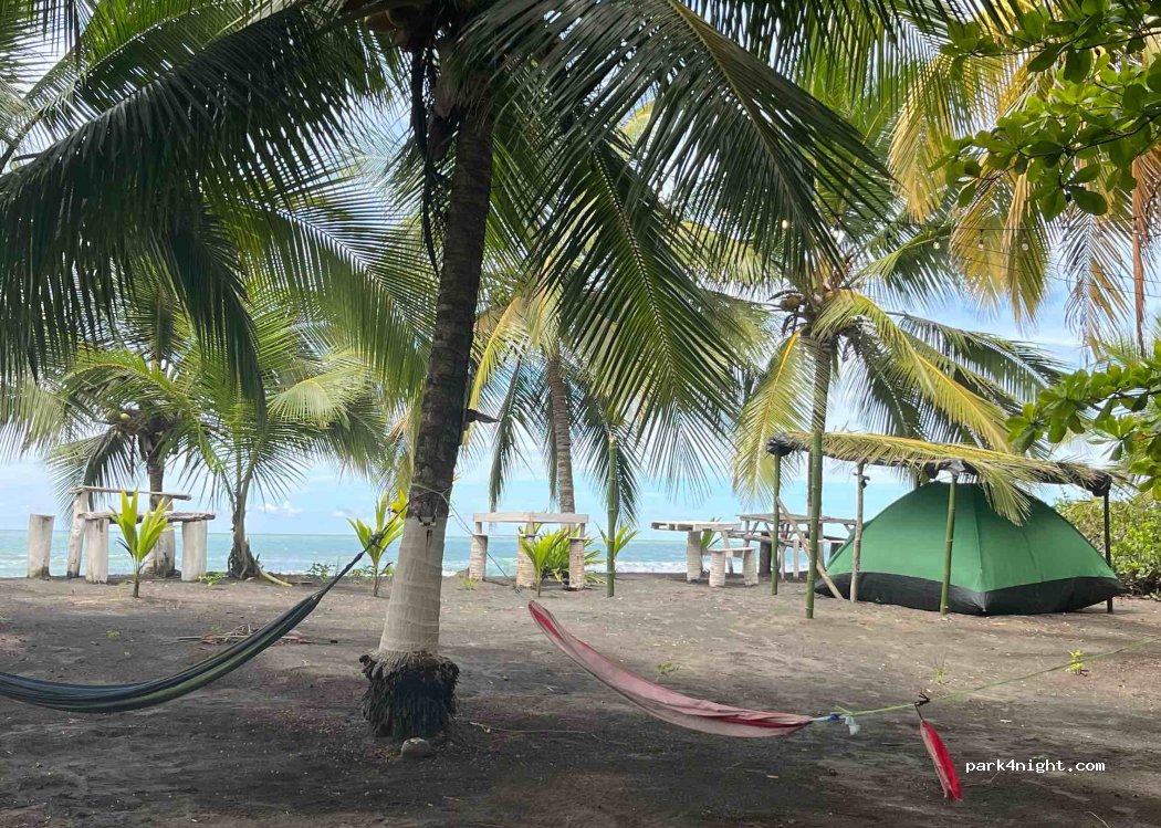 Willkommen im Paradies! Hier können Sie direkt am Strand mit Blick auf das Meer unter Palmen campen. Sie können entweder Ihr eigenes Wohnmobil mitbringen oder mieten: das Haus, eine Hütte, ein Zelt. Sie haben Zugang zu einer Küche, einem Badezimmer und Duschen. La Pura Vida!