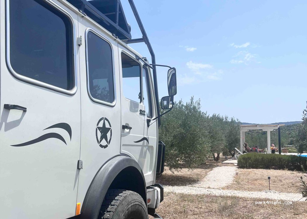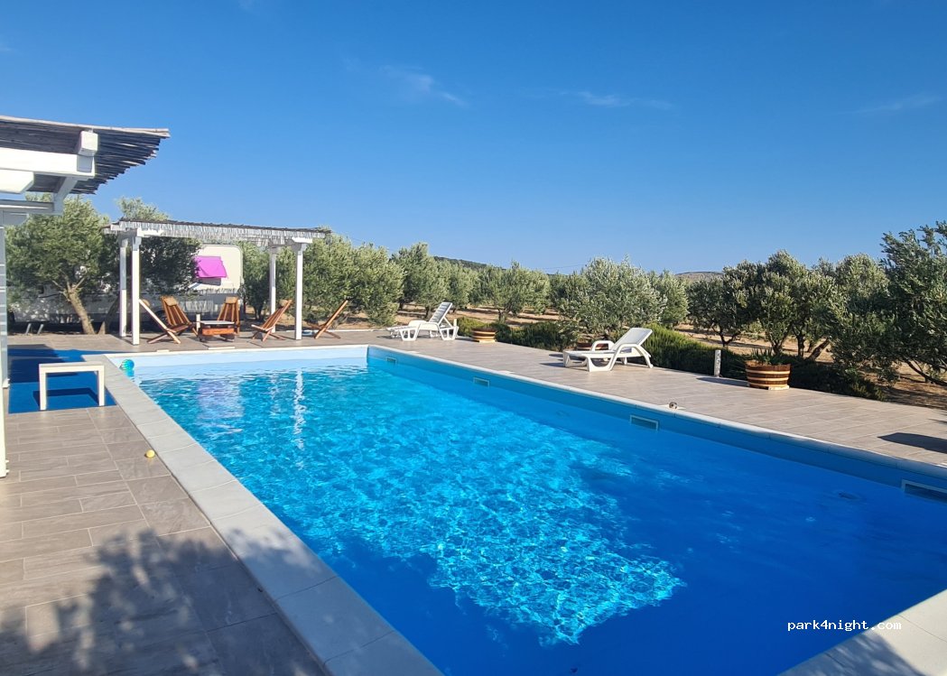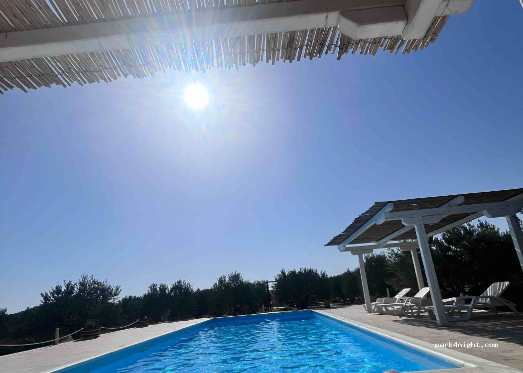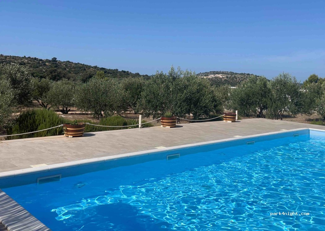 Samo miejsce piękne , basen zachwycający,niebo nocą gwieździste, ale to nie jest miejsce dla kamperów. Wszędzie niskie drzewa oliwne więc ciężko wjechać nie rysując auta. Prąd został nam odłączony bo wywalało korki wiec noc w upale bez klimy była trudna. nie warte 50 euro. Łazienka jedna męska i jedna damska bardzo czyste i nowe.