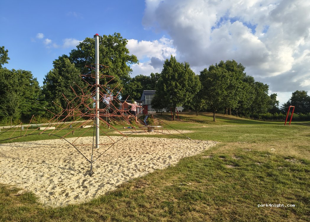 Ruhiger Platz für eine Nacht mit großem Spielplatz nebendran. Für Große und Kleine Kinder was dabei. Außerdem gibt es „Picknickbänke“ - perfekt zum Frühstücken :) Definitv auch Platz für mehr als 3 WoMos. Wie bereits beschrieben, sollte man nur auf die Platzwahl achten, da das Bad ab 9:30 recht gut besucht war, sodass man dann weiterhin gut rauskommt.