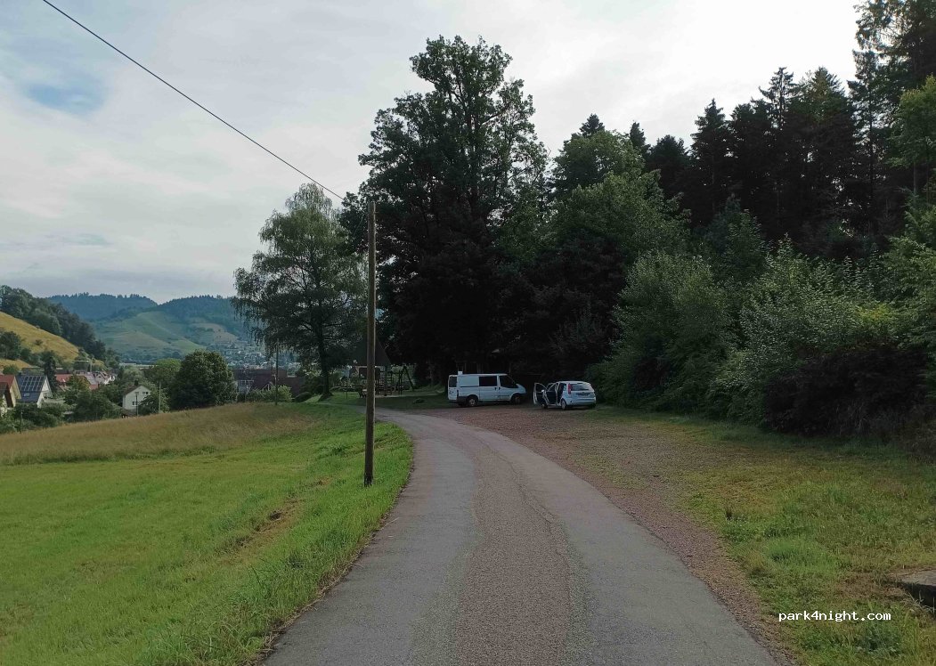 Très proche de Gengenbach. Environ 10 places assises, à côté d'une route de montagne très peu fréquentée. A côté de la bisque avec un ruisseau. A côté d'une aire de jeux avec un espace couvert en bois (type porche) pour discuter, manger, jouer en cas de pluie. Il y a une petite piscine pour se rafraîchir qui fait partie de l'aire de jeux (environ 50 cm de profondeur). Endroit très calme pour passer la nuit, adjacent à une petite ville. Alternative pour passer la nuit et ensuite aller visiter Gengenbach