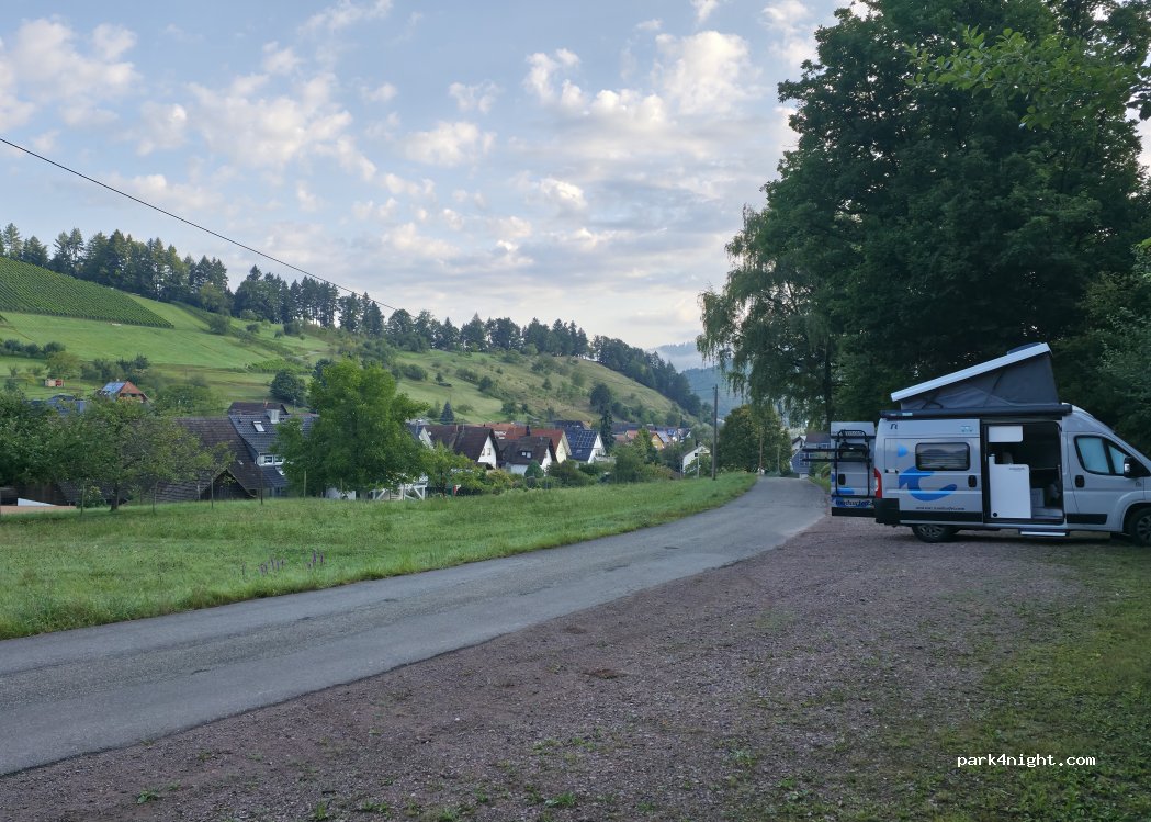Muy cerca de Gengenbach. Unas 10 plazas, junto una carretera de montaña muy poco transitada. Al lado del bisque con un arroyo. Junto a un parque infantil con una zona cubierta de madera (tipo porche) cubierta para charlar, comer jugar en caso de lluvia. Hay una pequeña como piscina para refrescarse que forma parte del parque infantil ( unos 50 cm de profundidad). Lugar muy tranquilo para pasar la noche, colindante a un pequeño pueblo. Alternativa para pasar la noche y luego ir a visitar Gengenbach
