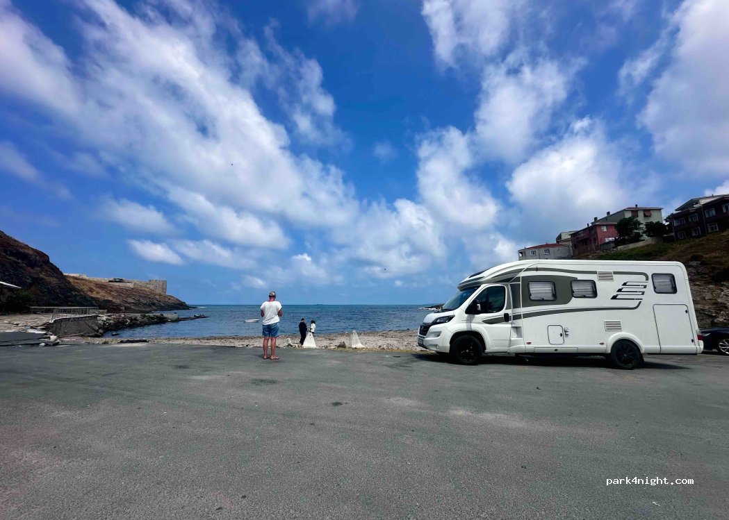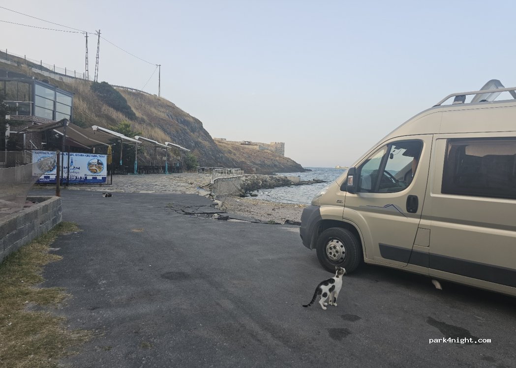 Juste à côté de la plage/du port à côté d'un restaurant avec wifi. OK pour la nuit.