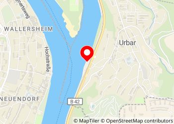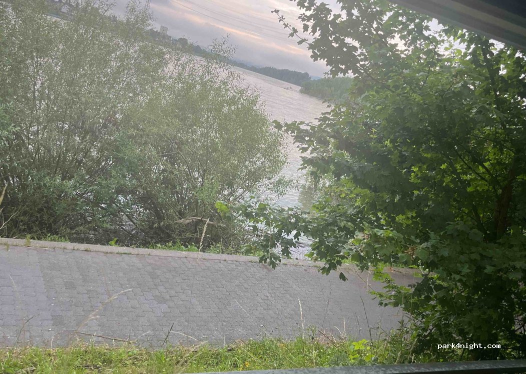 Het is even de weg zoeken, m aar dan sta je aan de Rijn. Het enige minpuntje is dat de trein daar regelmatig langs rijdt, maar daar hebben we eigenlijk heel weinig last van. Het leuke van dit plekje is dat je langs een voetpad naar het pontje kunt lopen en dan overvaren naar de stad Koblenz, Landseck. Bij terugkomst hebben we heerlijk gegeten bij het restaurant wat 50 meter van deze plek bevindt.
