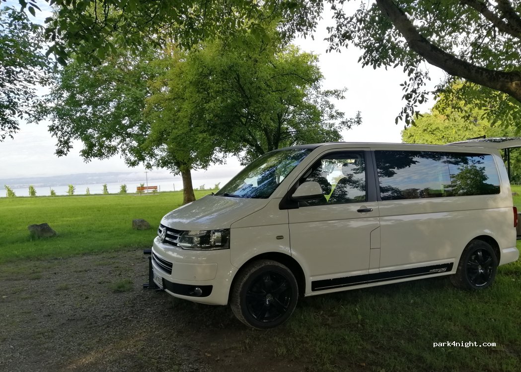 Quiet, green parking lot overlooking the lake and mountains. forbidden at night. Please note the maximum height of 2.00 m. Prohibited for mobile homes.