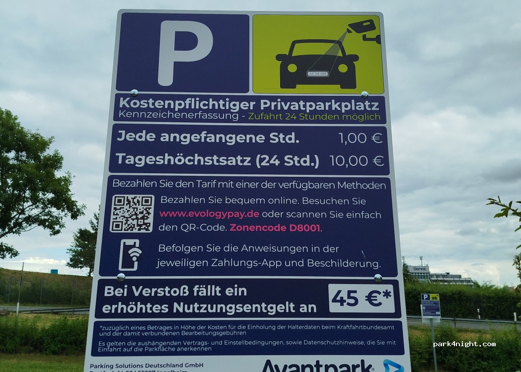 Nice parking with a view on the track (just the first turn). Flat and large space, no other services. 11.5 per 24 hours with easy park app.
