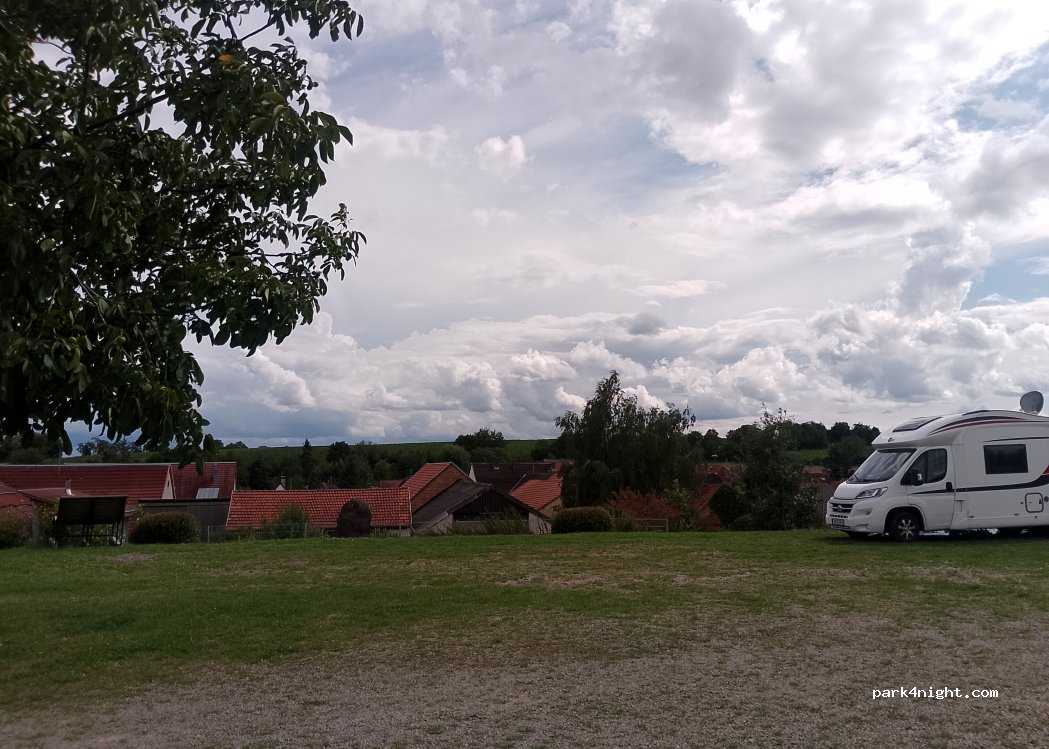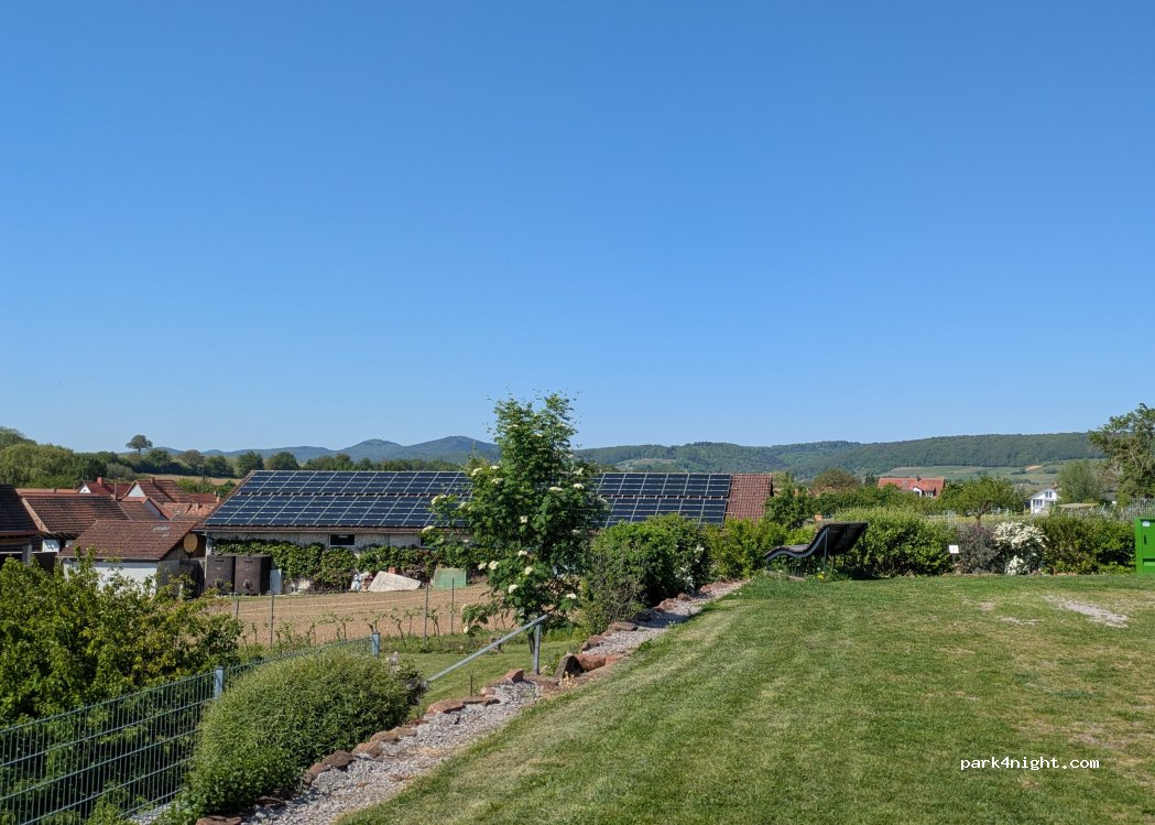 Schöner Platz am Rande der Weinreben. Strom, Dusche, WC incl. Alles sauber und ordentlich. Ein Weinkühlschrank ist ebenfalls da. Weinprobe war super. Tolle Weine! Man kann buchen und 25€ incl. allem ist zwar ne Menge, weil keine V/E und kein Müll, aber schln war es trotzdem. Die Nacht endete morgens um 7 Uhr, als die Kirchenglocke ein 2 minütiges Konzert gab... Dann alle Viertelstunde DingDong..
