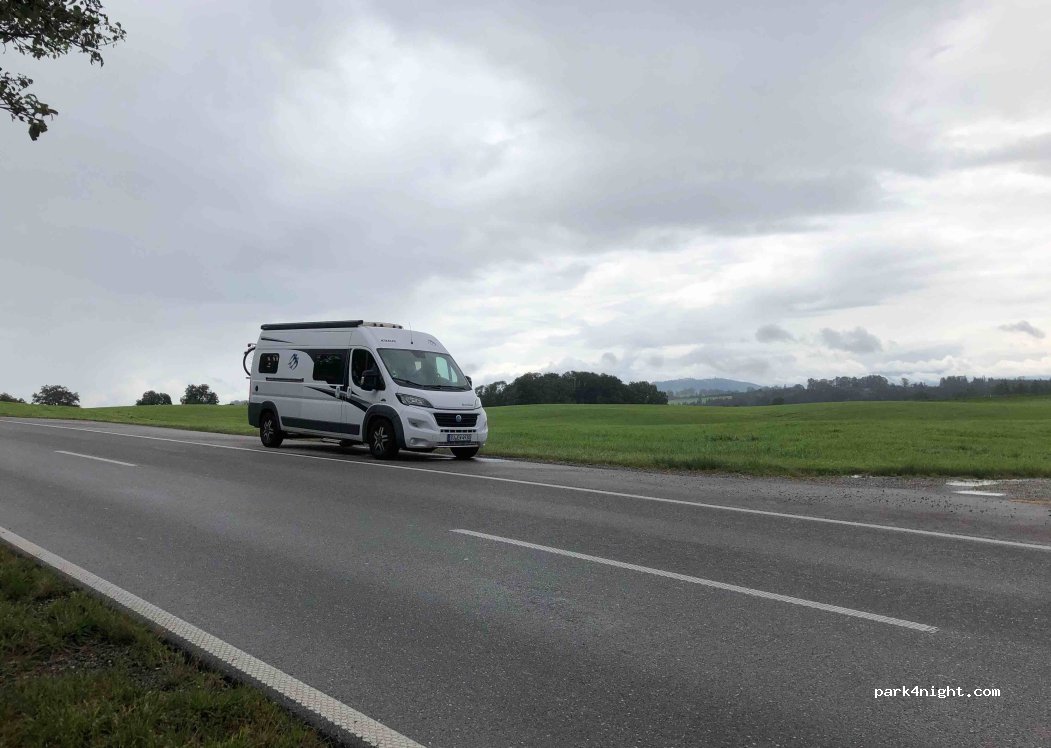 Direkt an der Straße. Zum Kochen zu starke Neigung, übernachten würde ich hier auch nicht.