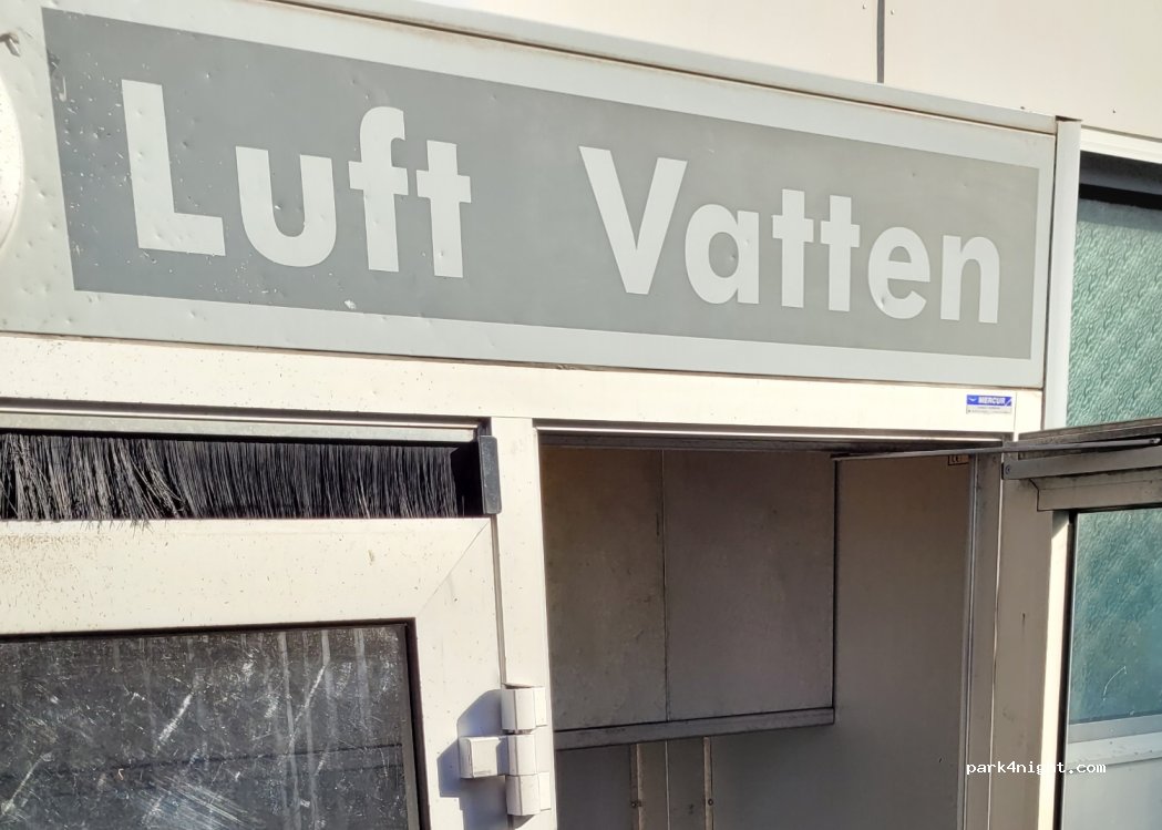 Possibility to fill up with water at the Shell gas station. Own tap adapter required.