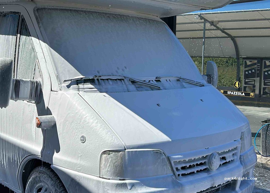 Al rifornimento esso lavaggio camper in modalità self con chiavetta. Schiuma attiva sgrassante
