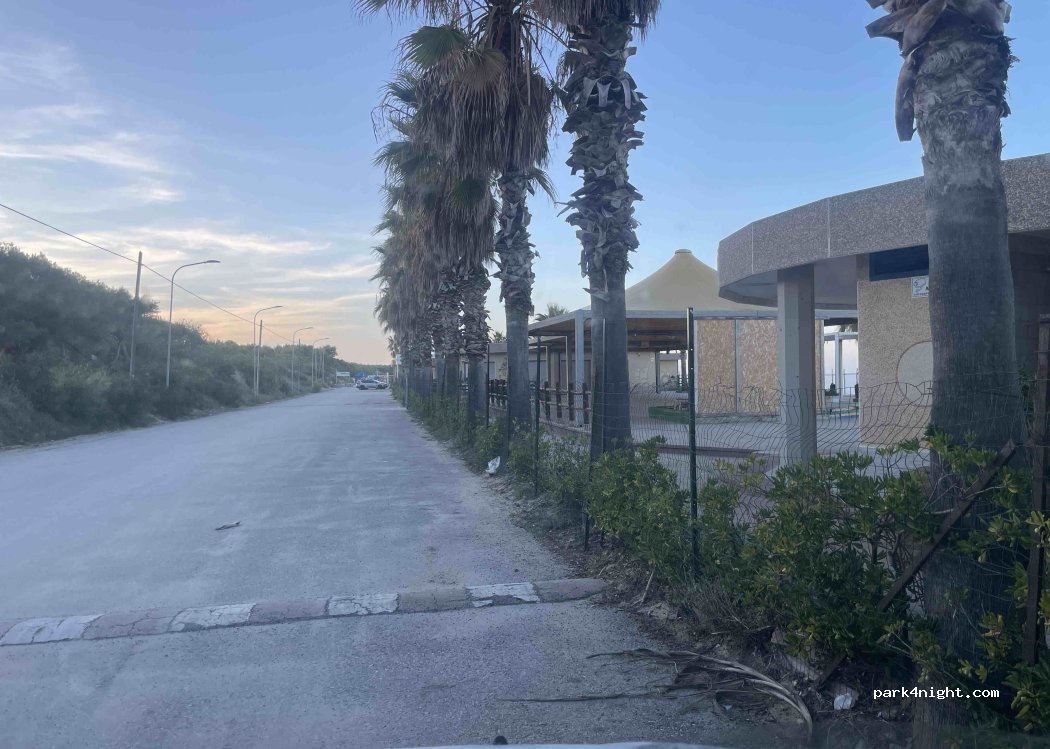 Sehr ruhiges Parken zwischen zwei Einrichtungen, der freie Strand ist nur wenige Schritte entfernt