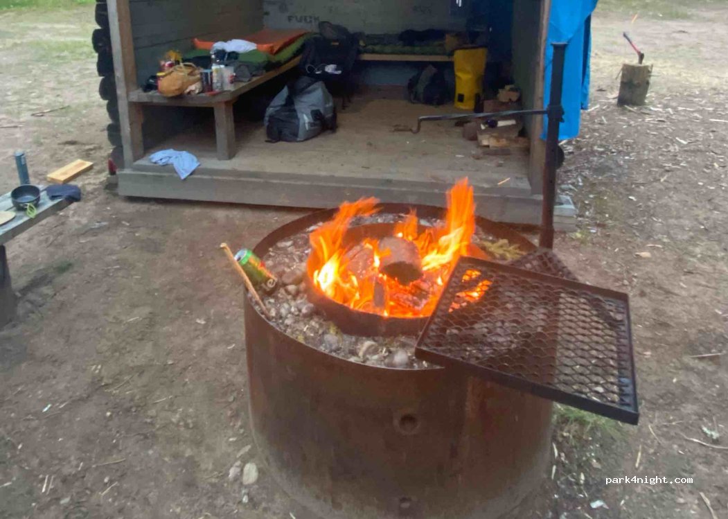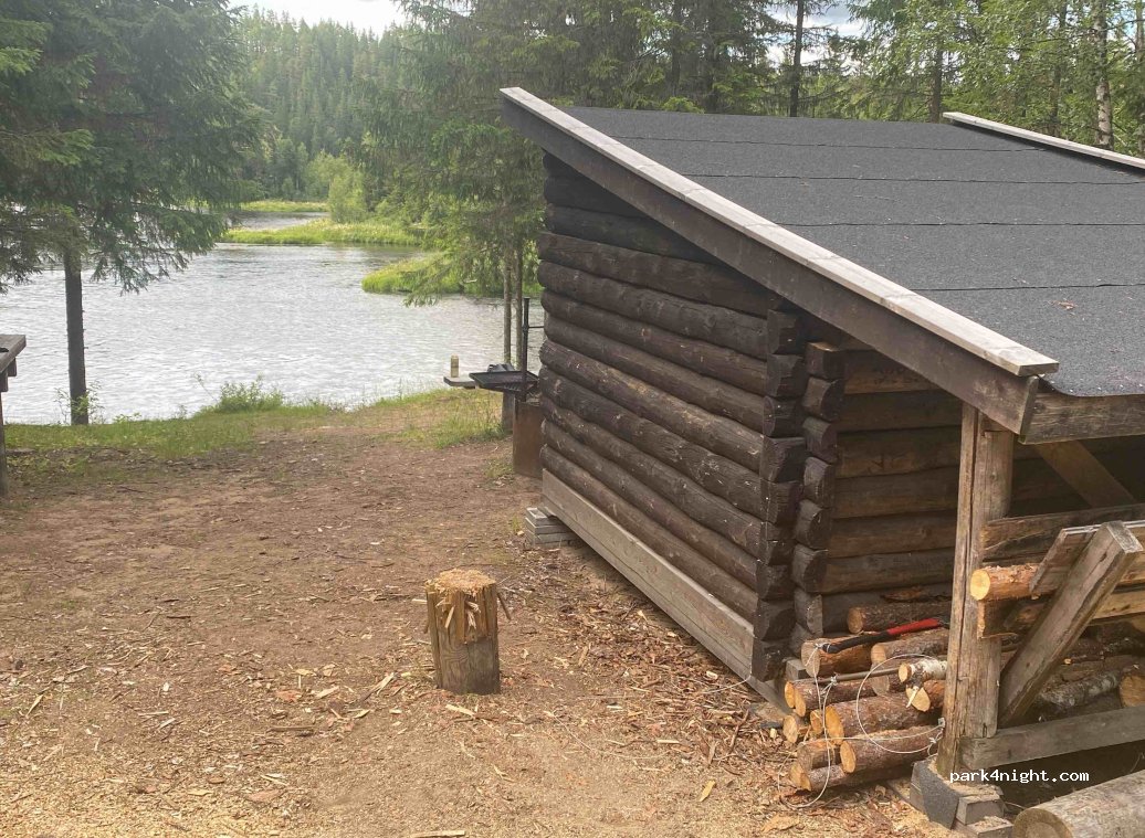 Accessible par tout véhicule, mais route de gravier. Magnifique refuge en forêt avec vue sur la rivière. Grand banc pour s'asseoir dans et devant l'abri. Deux personnes peuvent également dormir confortablement à l'intérieur. Grand foyer avec grill et possibilité de cuisson. Du bois, des scies et des haches sont disponibles au refuge.