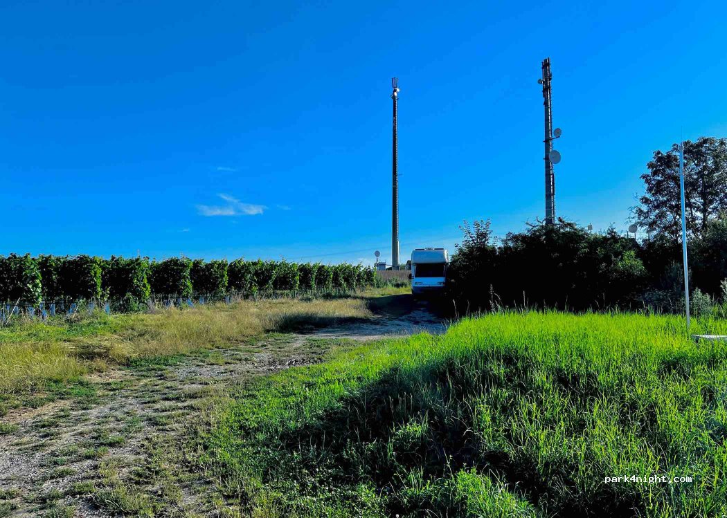 Behind a directional antenna, away from the road. Between vineyards and fields. The village can be easily reached on foot in 15 minutes. Access via a gravel road. Might be muddy in heavy rain.