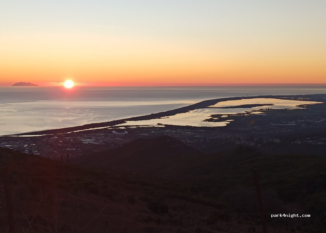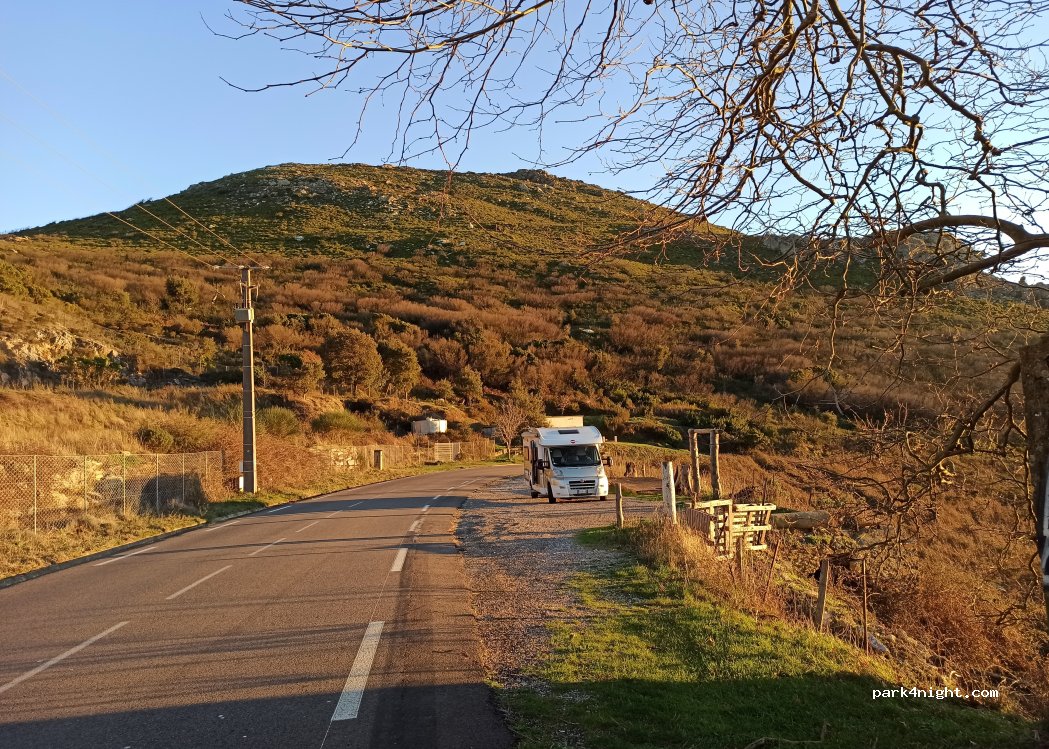 è una piazzola in piano sulla strada di fianco ad un rudere ma a fine dicembre sulla strada non passa quasi nessuno e la vista sulla laguna di Bastia è spettacolare, noi abbiamo fatto colazione dopo essere sbarcati dal traghetto, un'alba da manuale (max 3/4 camper)