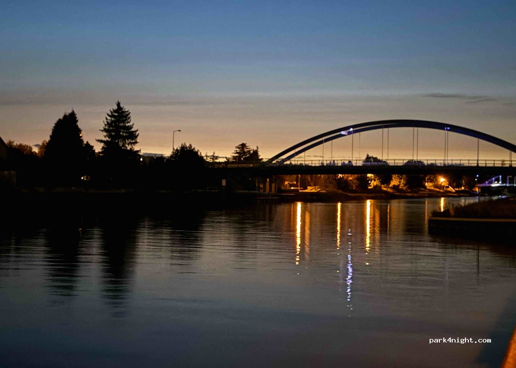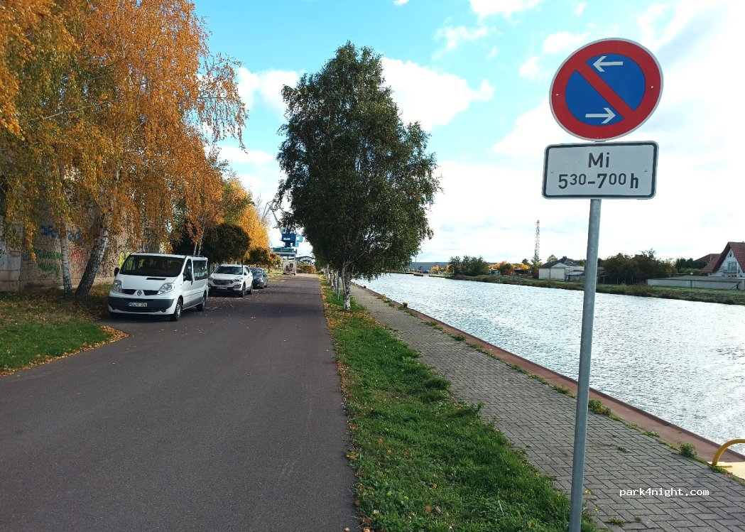 Plusieurs places de stationnement simples directement sur le canal Mittelland. Bien pour une nuit gratuite dans un endroit relativement calme. En diagonale opposée se trouve la place de parking officielle.