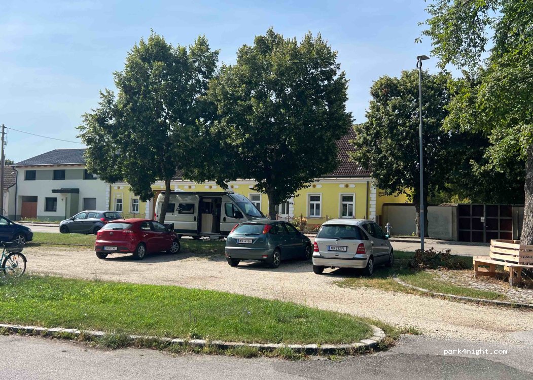 Parking, near by bus station and school, for big camper cars. Silent area and friendly people here.