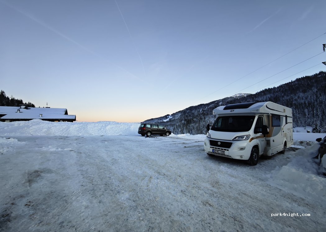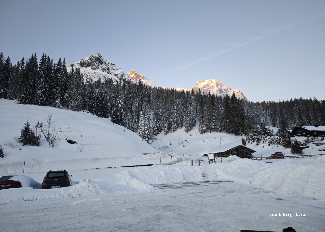 Flat parking lot at Hochkönig right next to the main road, wonderful vantage point for the sunrise over the Dachstein,
