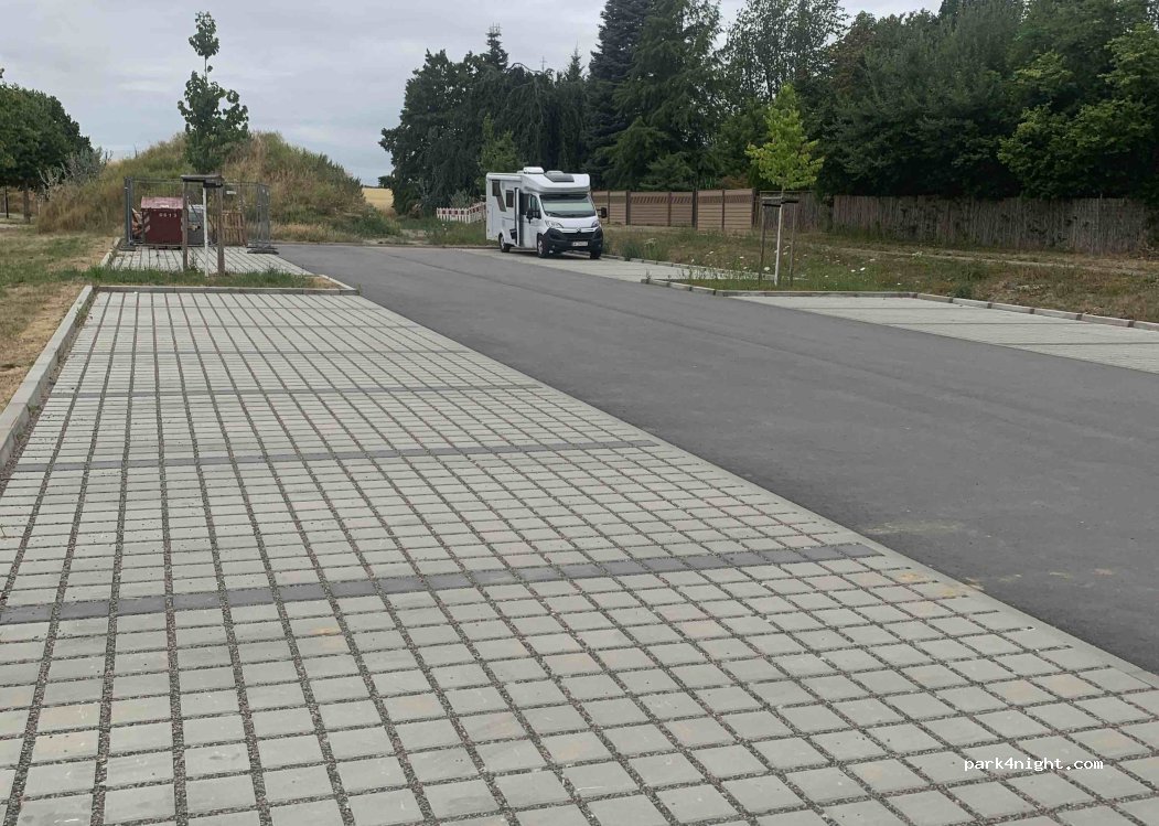 Top für eine Übernachtung .5.50m kein Problem sonst halt quer. Absolute Ruhe. Sportplatz hat auch eine kleine Gaststätte. Bitte sauber verlassen.