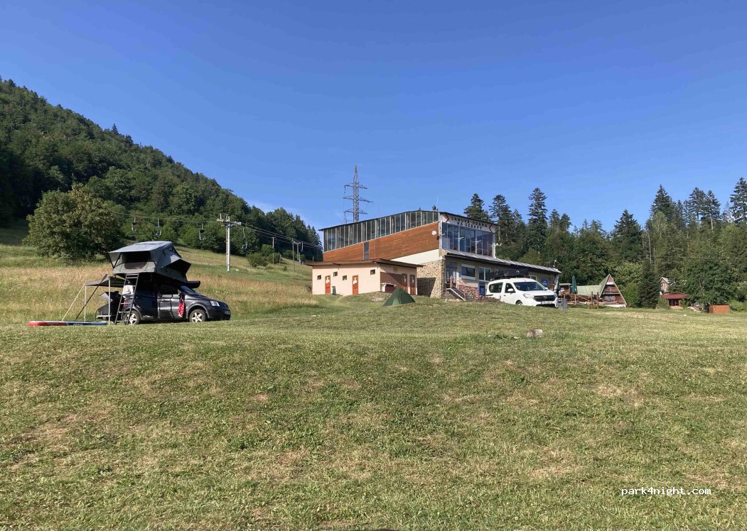 Campsite attached to the hotel right next door. Sanitary facilities available (without electricity). Very nice view but sloping terrain, so you have to arrive quite early to get a good place. Land not suitable for motorhomes.