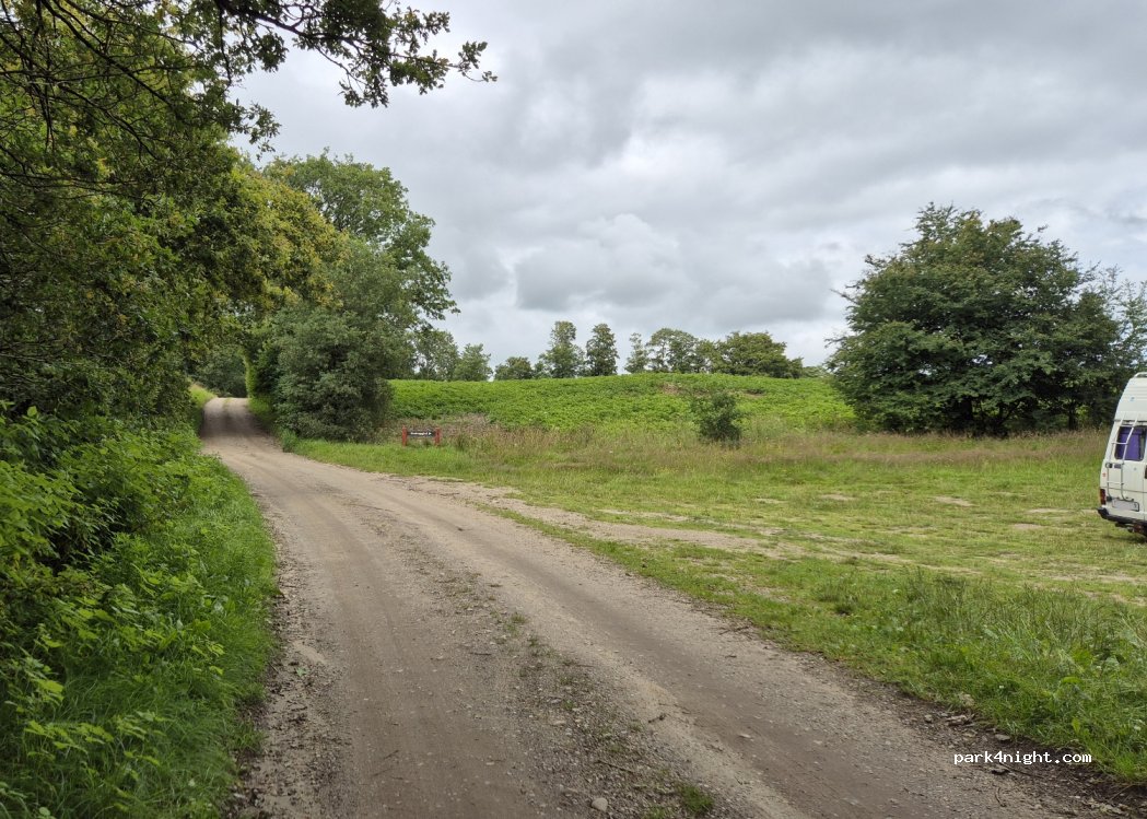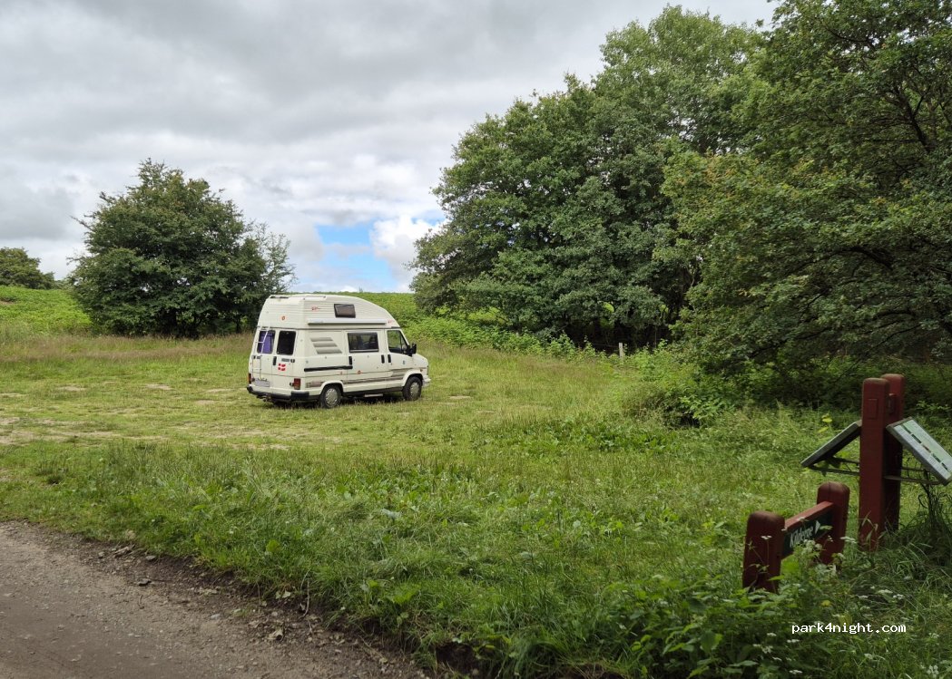 Schöner Rasenparkplatz, der allerdings etwas uneben ist. Liegt direkt neben dem Hærvejen, einem Feldweg. Wenn Sie dem Koutrupvej folgen, können Sie fast bis zum Gelände auf einer normalen Straße fahren.
