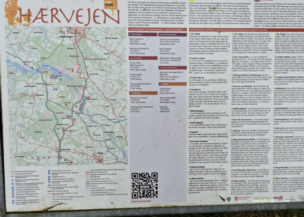 Beau parking en herbe qui est cependant un peu inégal. Situé juste à côté de Hærvejen, qui est un chemin de terre. Il est possible de parcourir presque tout le chemin jusqu'au site par une route normale si vous suivez Koutrupvej.