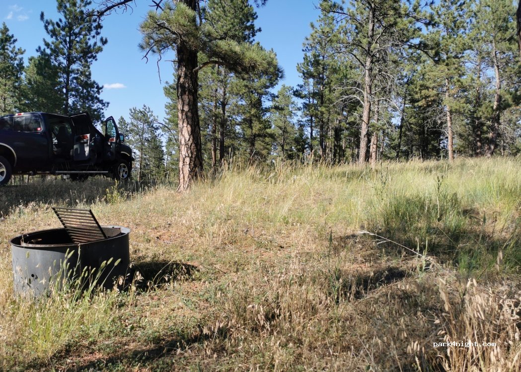 Camping en el bosque de esquisto rojo. Gratis. Dos bucles. El primer circuito está cerca de la autopista y, por lo tanto, es un poco ruidoso. También hierba muy crecida. Un poco de sombra bajo los pinos. No bajamos por el segundo circuito con nuestro camión grande de 53 pies de largo total porque el camino estaba muy lleno de baches. Pozo de fuego, sin bancos. Sólo baños de fosa. Sin agua ni botes de basura. El primero en llegar es el primero en ser atendido. Sin reservas.