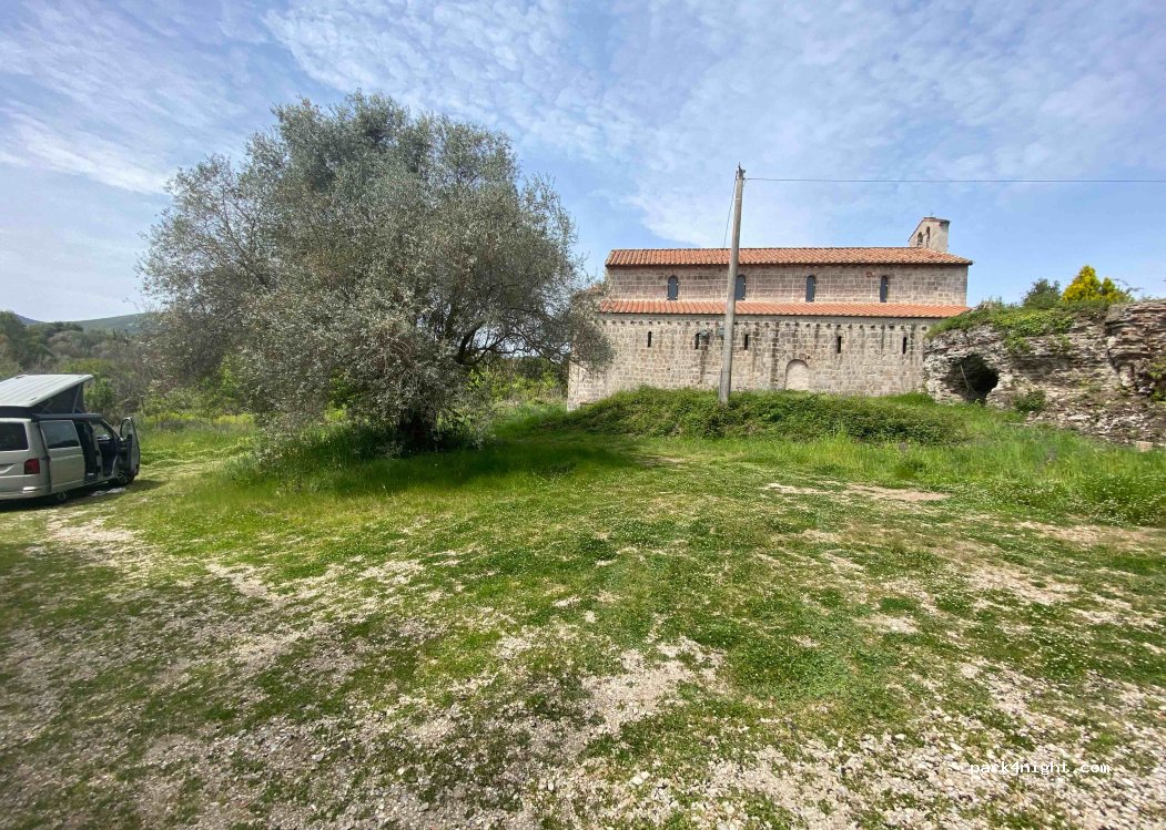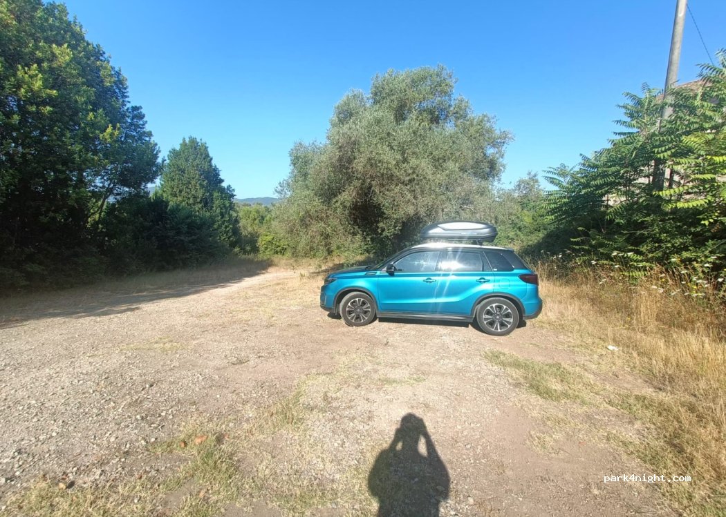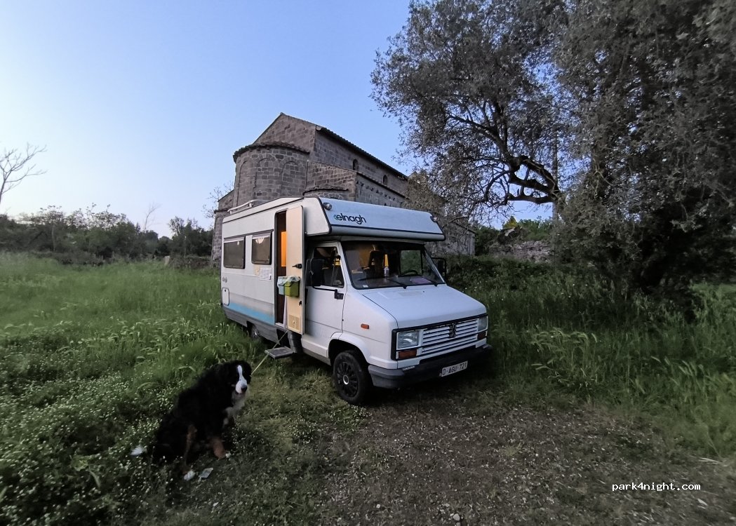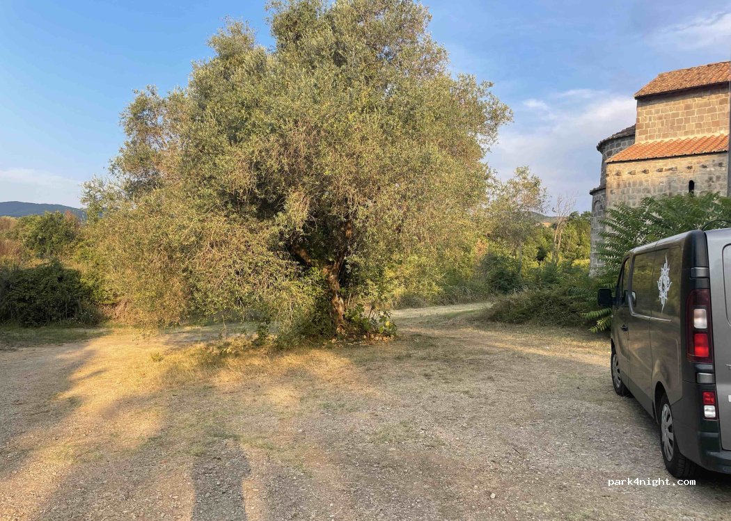 Beaucoup plus simple d'accès (chemin goudronné plat, peu large cependant) en passant par le village de Ventaroli (41,2121470, 13,9855042). Au calme près d'une église, un olivier pour l'ombre, pas beaucoup de zones à plat. Beaucoup d'animaux sauvages, nous avons entendu quelques renards la nuit mais plutôt agréable, très calme.