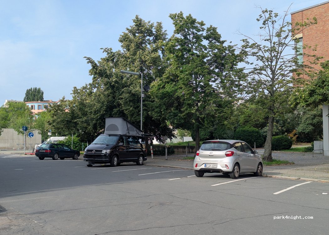 A very quiet area at night, surrounded by museums. No supplies, but you can park independently without any problems. Mon-Sat from 9am-10pm it is a residents' parking zone, and a parking ticket is required. Free at night and there are no prohibition signs. Perfect for a quiet night in Berlin!