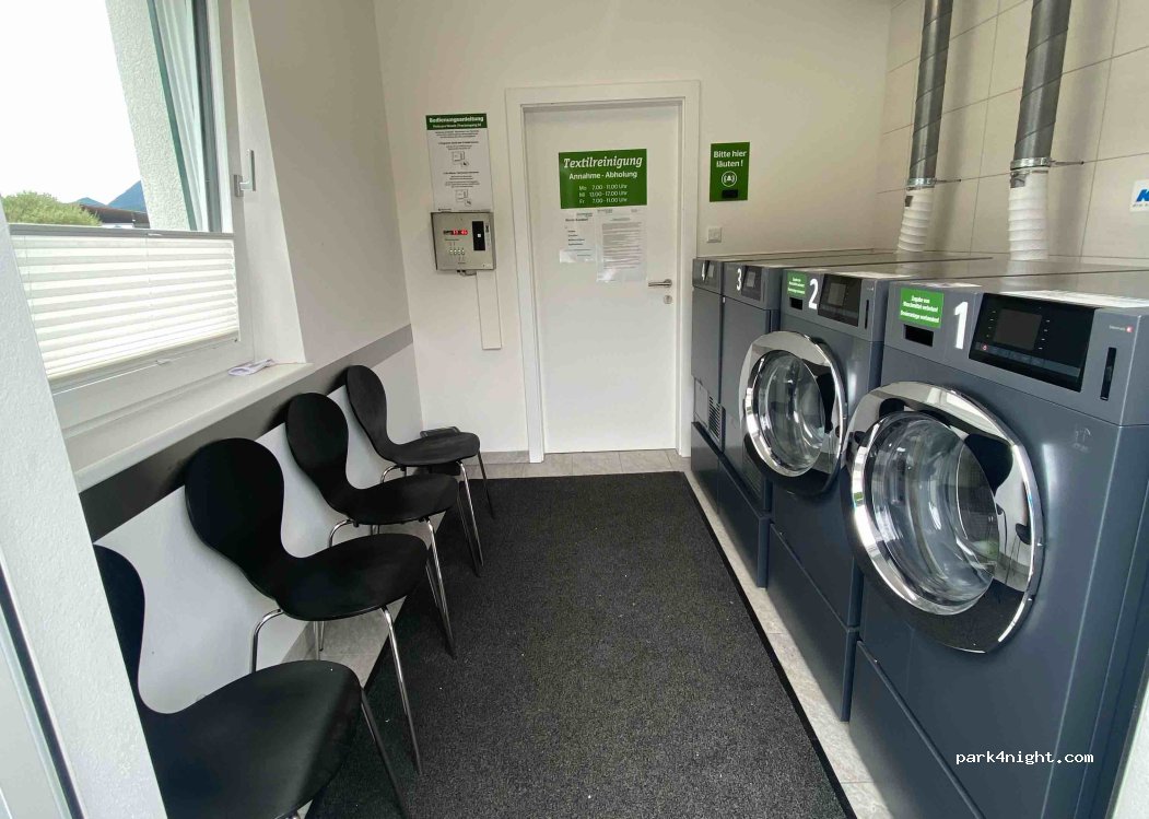 2 Waschmaschinen (7kg), 2 Trockner (4kg). Nichts extra, kein Klapptisch, Steckdosen, Automat, nur die 4 Maschinen und 4 Stühle. Alles ist auf Deutsch, keine Übersetzungen!