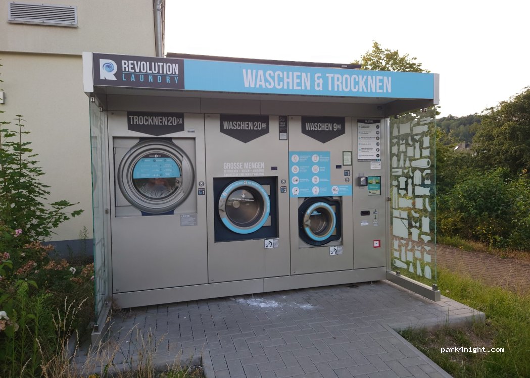 Lircheim Autohof - lavage 6/12EUR pour 9/20kg, douches (payées chez Shell), eau et WiFi chez Burger King (le code des toilettes est 3341), immense parking bruyant 15EUR/nuit (dont 10 à dépenser chez Shell). Les douches coûtent 4 EUR illimitées - pas très propres mais il y a des toilettes et une prise 220 V à l'intérieur.