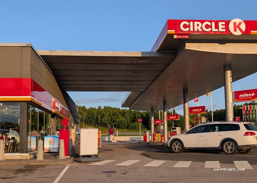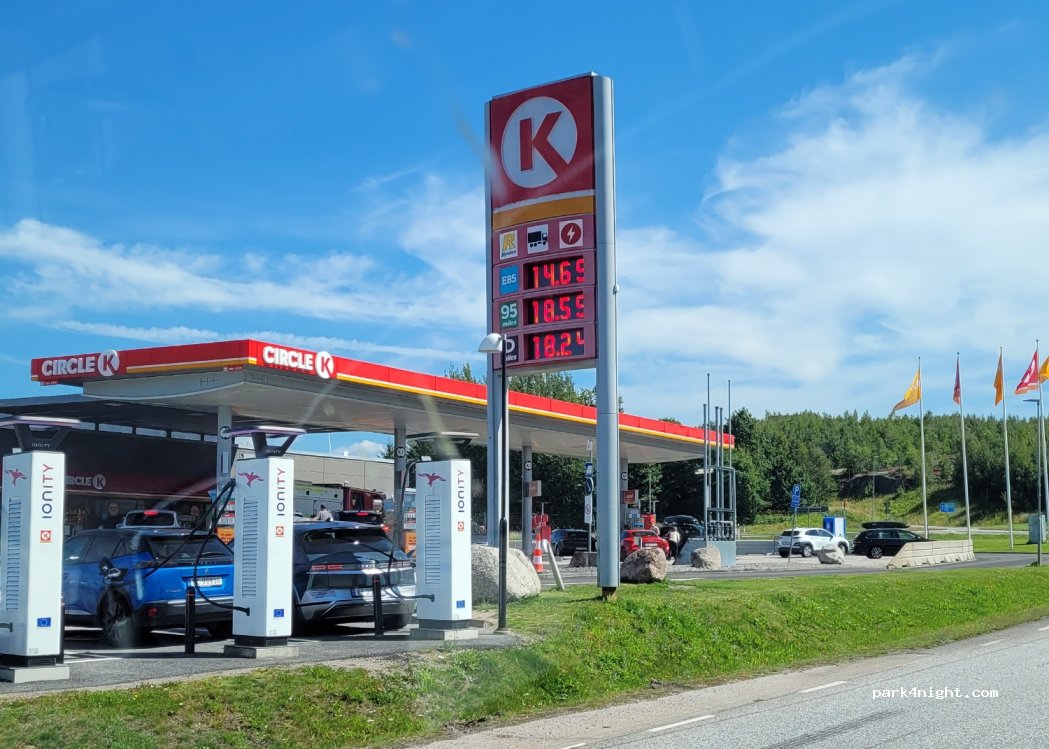 Circle K Tankstelle in Strömstad direkt an der E6. Möglichkeit Frischwasser zu tanken und günstig zu tanken wenn man aus Norwegen kommt.