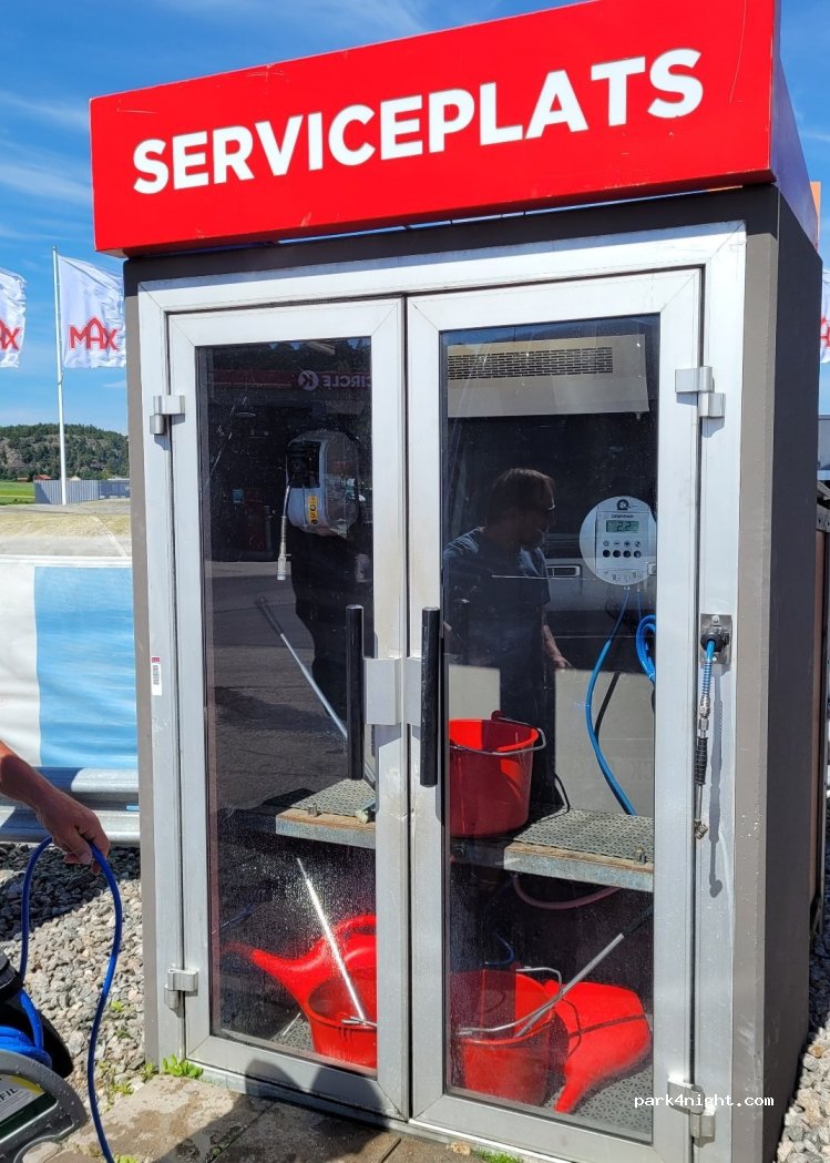 Circle K petrol station in Strömstad directly on the E6. Possibility to fill up with fresh water and to fill up cheaply when coming from Norway .