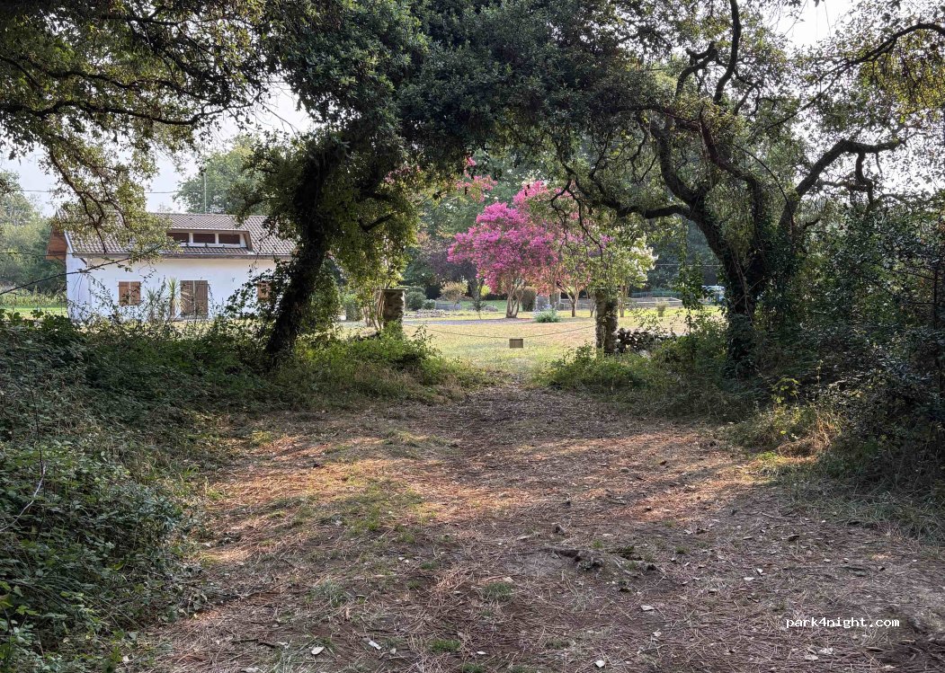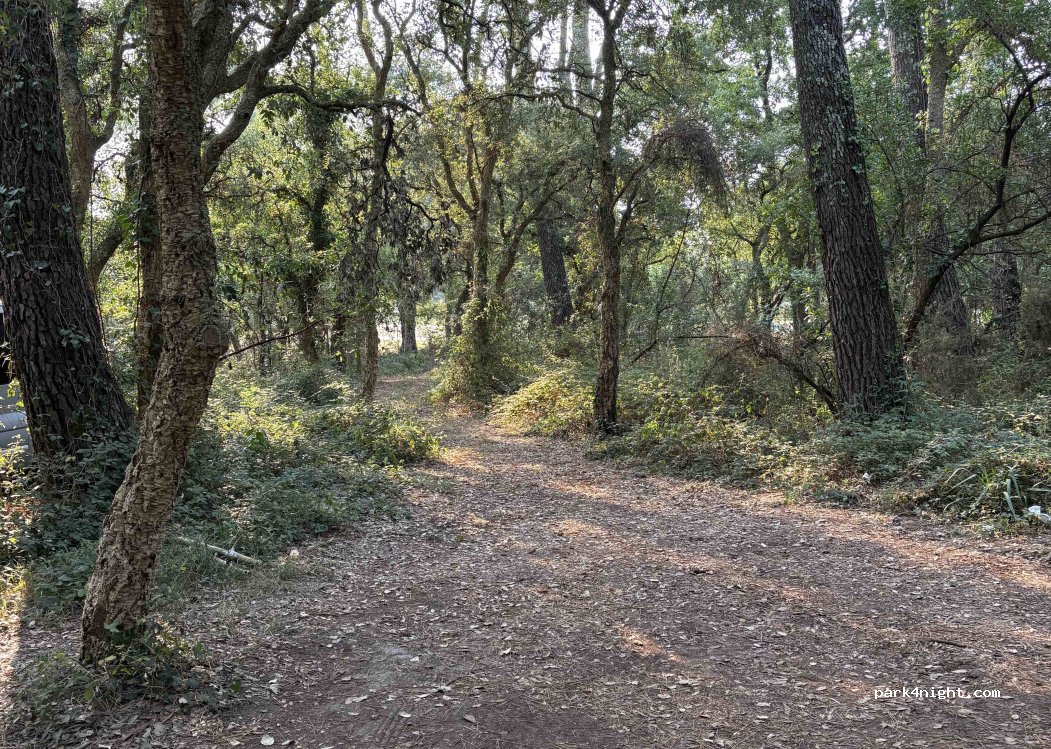 Aparcamiento entre los árboles cerca de una carretera. Hemos pernoctado sin problema, es cierto que había muchos mosquitos y por la mañana es una zona de polígonos muy transitada por camiones que se escuchan de fondo. No hay fuentes pero sí basuras cercanas, dejemos todo limpio por favor!!
