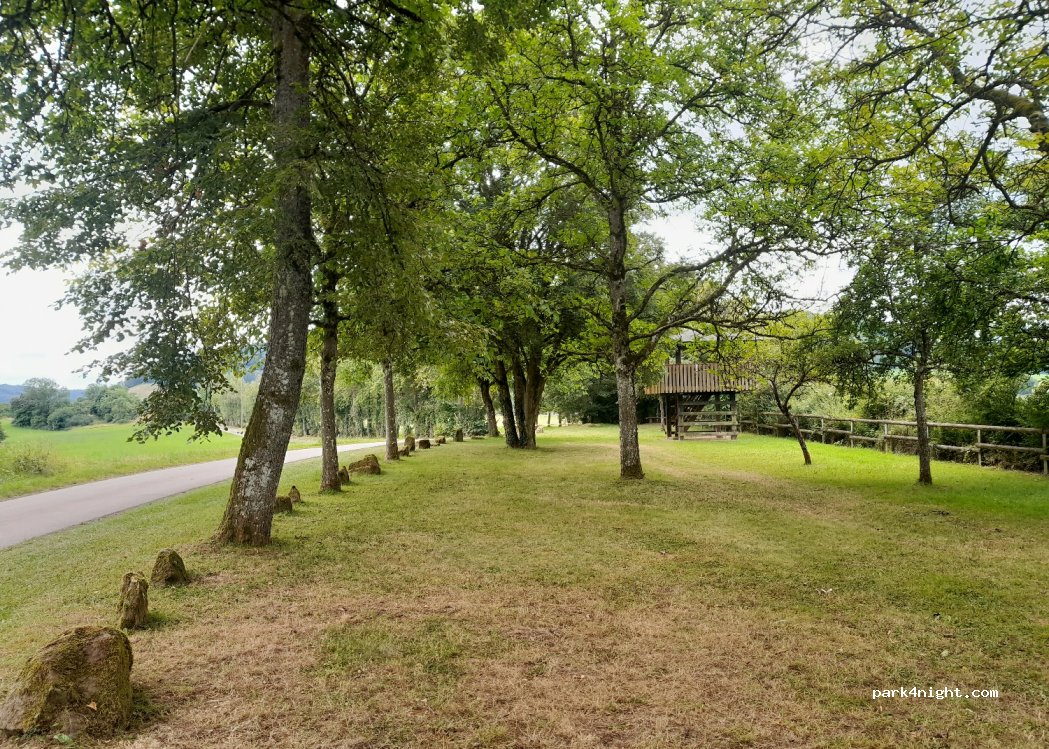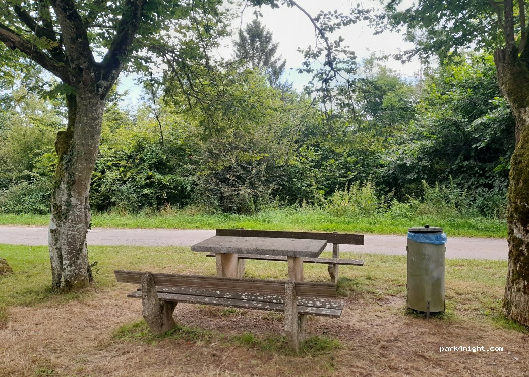 Belle aire de pique-nique avec point de vue. J'ai passé la nuit ici sans aucun problème. Un peu plus loin se trouve le club de football avec un bâtiment où l'on peut s'approvisionner en eau à l'extérieur.