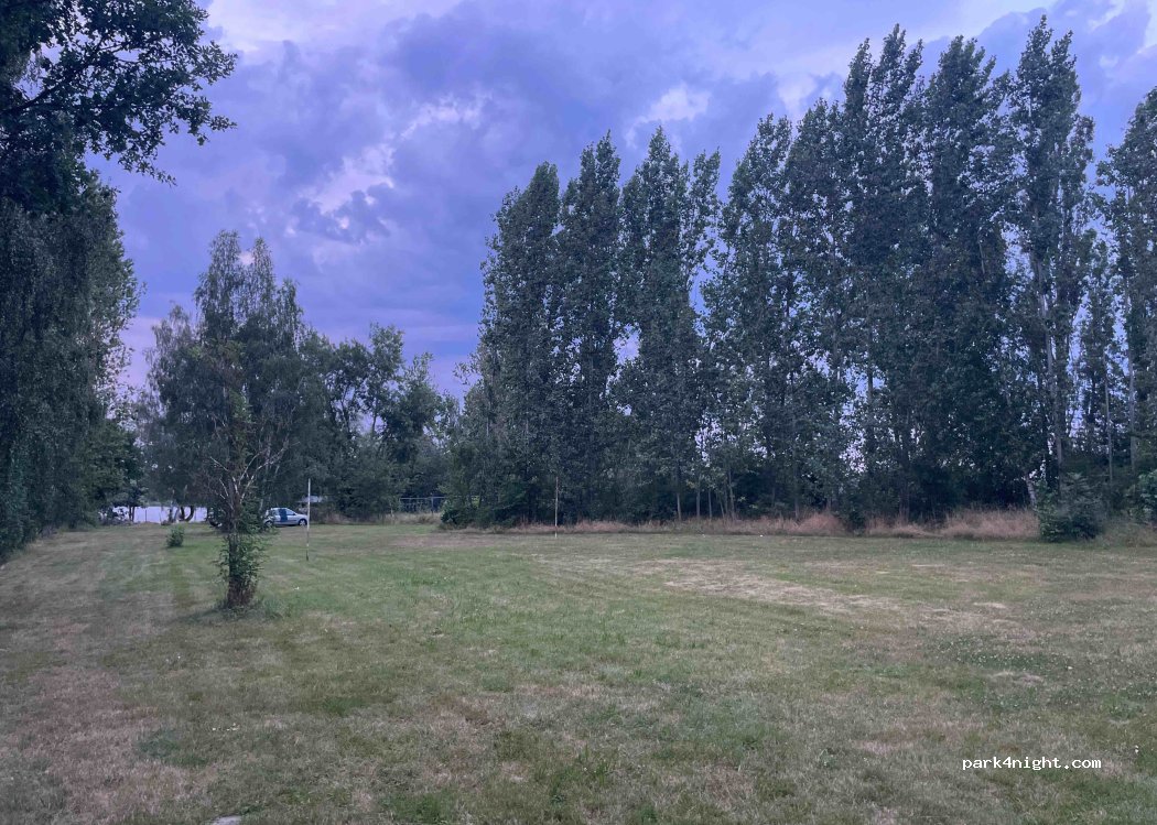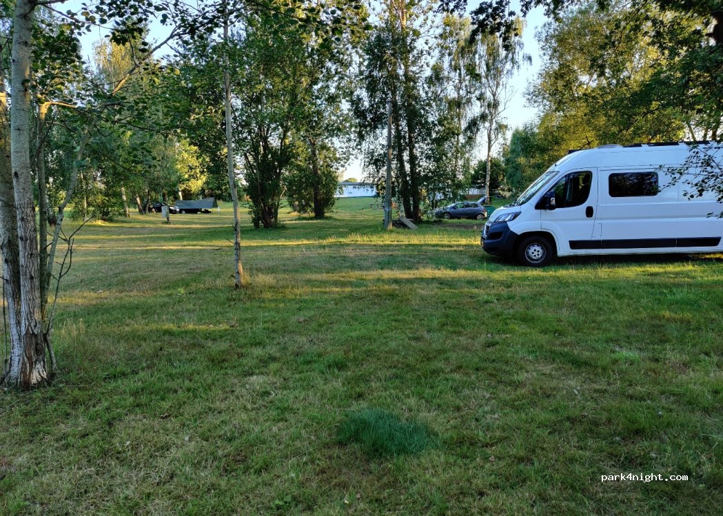 Sober. Natuur. Niet verhard, alleen grasland met bomen. Veel schaduw. Echte stilte. Stilstaand meertje. Prijs is €31 voor 2 personen, hond en stroom. Aan de hoge kant. Prima voor 1 of 2 dagen. Aardige mensen. De laatste weg is erg smal en eigenlijk niet geschikt voor een camper. Zelfs een fiets als tegenligger is een uitdaging. Keren op die weg is onmogelijk.