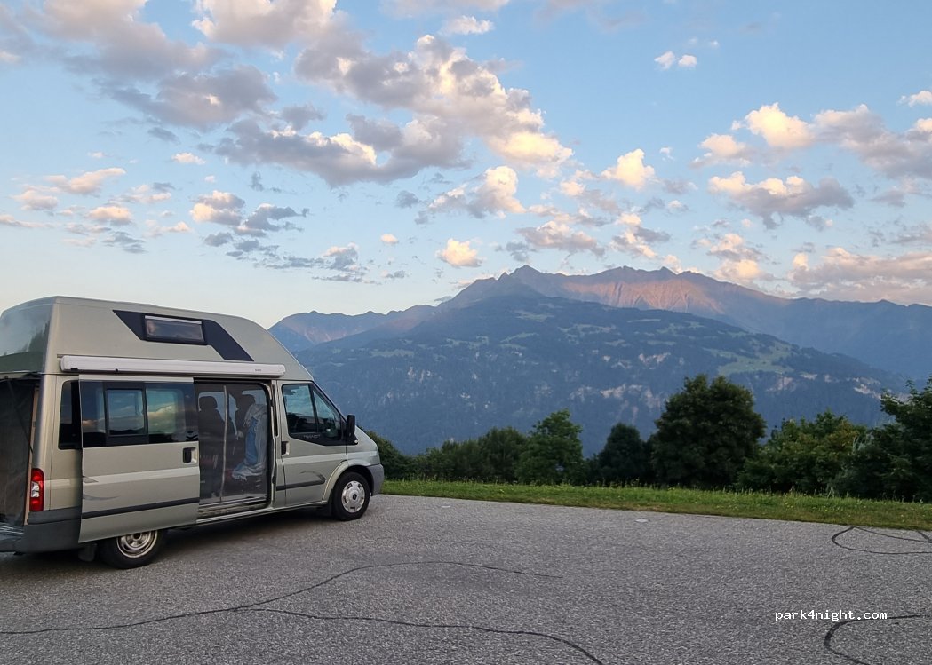 Parking lot near the church of St. Zeno - often used for weddings. With a wonderful view. Toilet below the church is only open during the day. Access via serpentine road with VW T5 easy no problem with RV. possible depending on size.