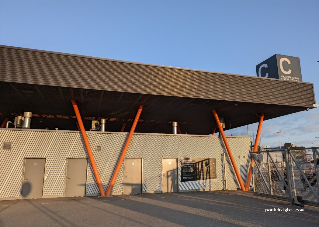 Öffentliche Toiletten in der Nähe des Parkplatzes und des Fährterminals.