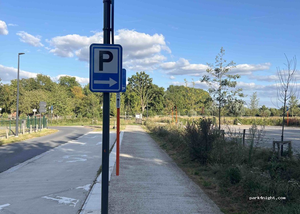 Parkplatz auf dem öffentlichen Gelände „De Campagne“. Schöne Spazierwege in der Nähe. Radweg nach Gent.