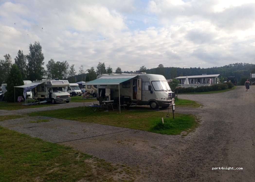 Ein ganz normaler typischer schwedischer Campingplatz. Vollkommen ausreichend. Ja, es ist in die Jahre gekommen aber als wir im Oktober dort waren war alles sauber. Bei den Wiesen vorne muss man allerdings aufpassen wegen festfahren. War sehr nass in unserem Zeitraum. Abstecher natürlich zum Wasserfall gemacht.
