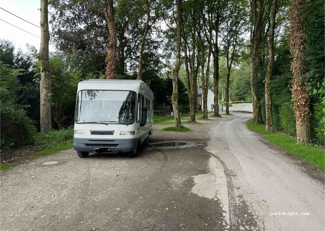 Directement au point de livraison et d'élimination à Haan. Continuez simplement à conduire. Après environ 100 mètres, il y a une place de parking entre de beaux et vieux arbres. Quand nous y étions, c'était complètement vide. Calme et toujours en ville. Très agréable.