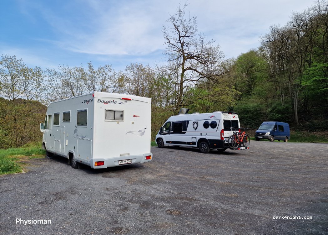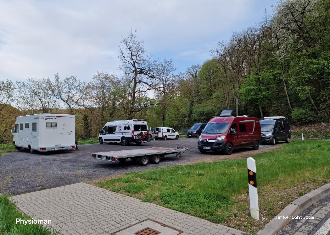 Twee nachten op deze plaats geslapen tijdens de wijnfeesten in Cochem. De loopafstand naar het stadje is prima te doen. De weg van het stadje naar de plek is wel een klim, maar voor ons prima. Het ligt aan een druk bezochte weg, maar afgelegen genoeg om er rustig te kunnen slapen. Ook voldoende beweging van ander auto’s en campers waardoor je er niet alleen staat.